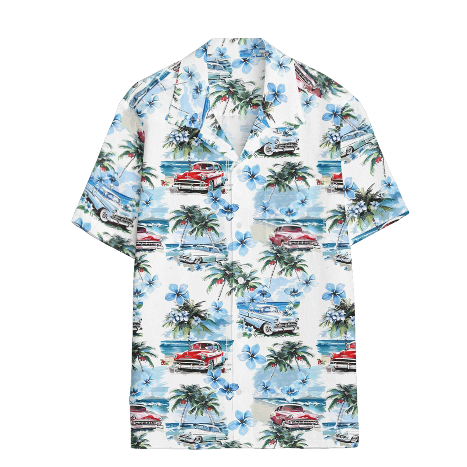 Vintage Car Hawaiian Vacation Men's Breathable Hawaiian Shirt Pocket Camp Shirt
