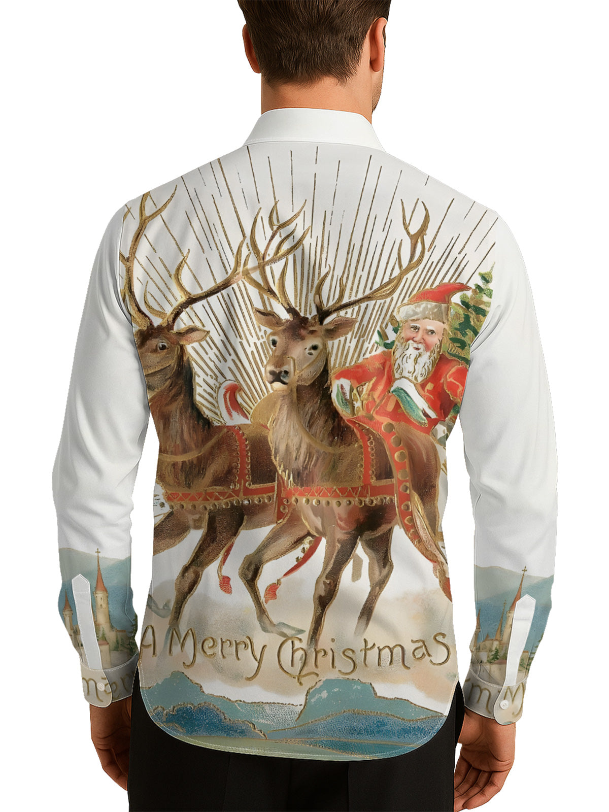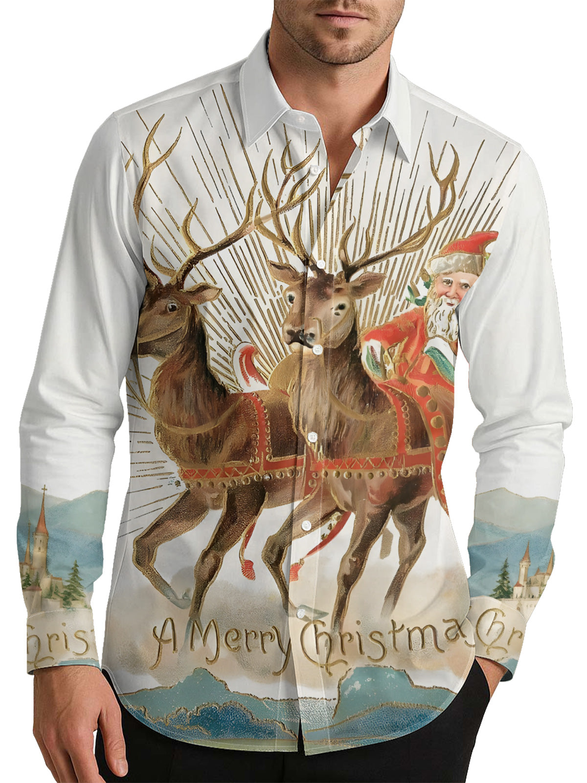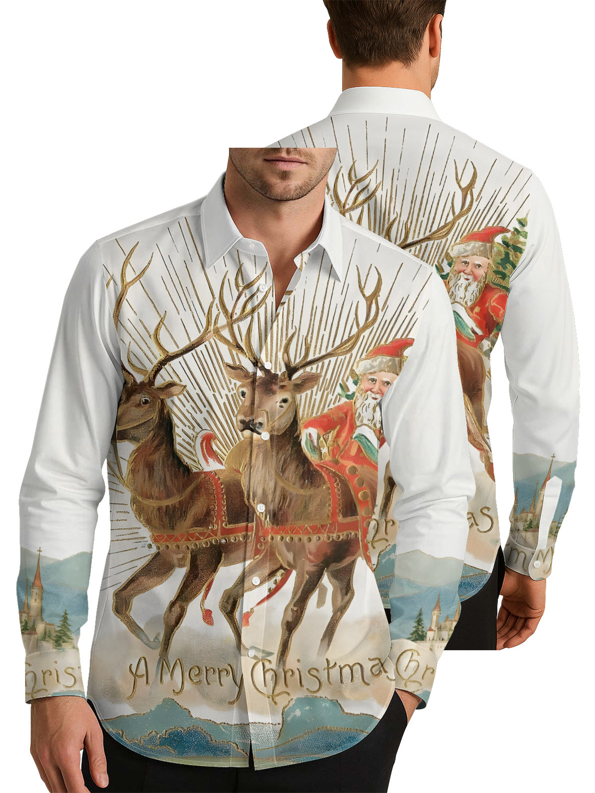 Reindeer Santa Claus Men's Shirt Long Sleeve Button Up Shirt