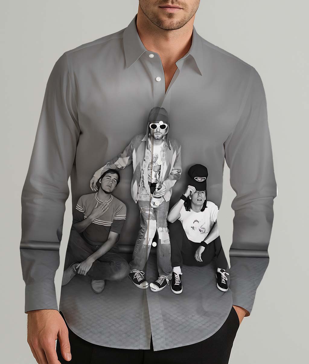 Nirvana Photo Men's Shirt Long Sleeve Button Up Shirt