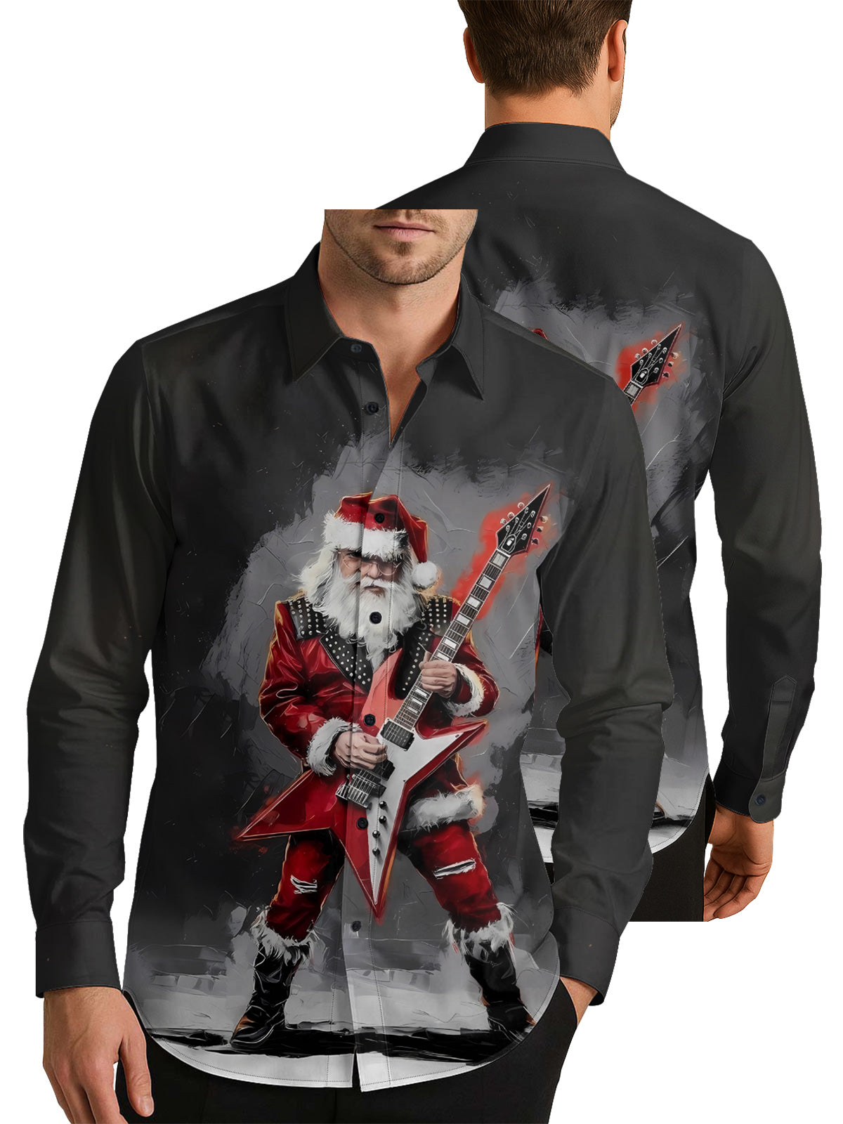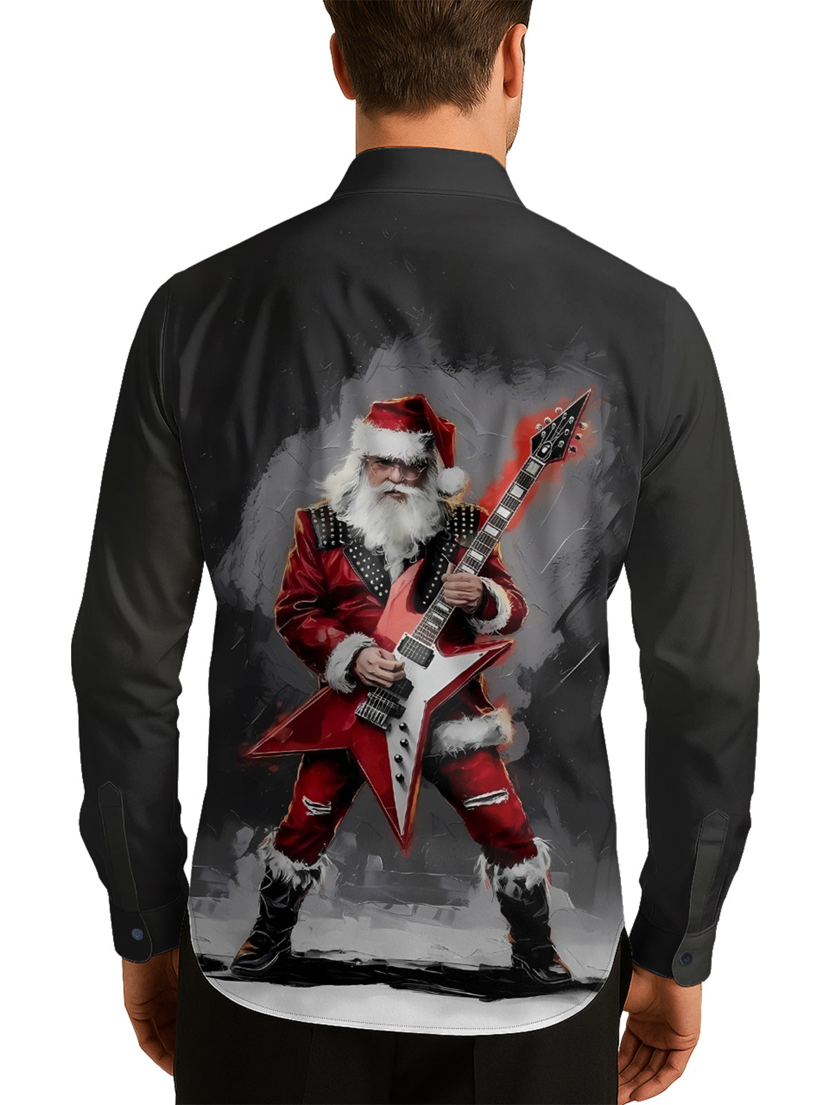 Rockin' Santa Men's Shirt Long Sleeve Button Up Shirt
