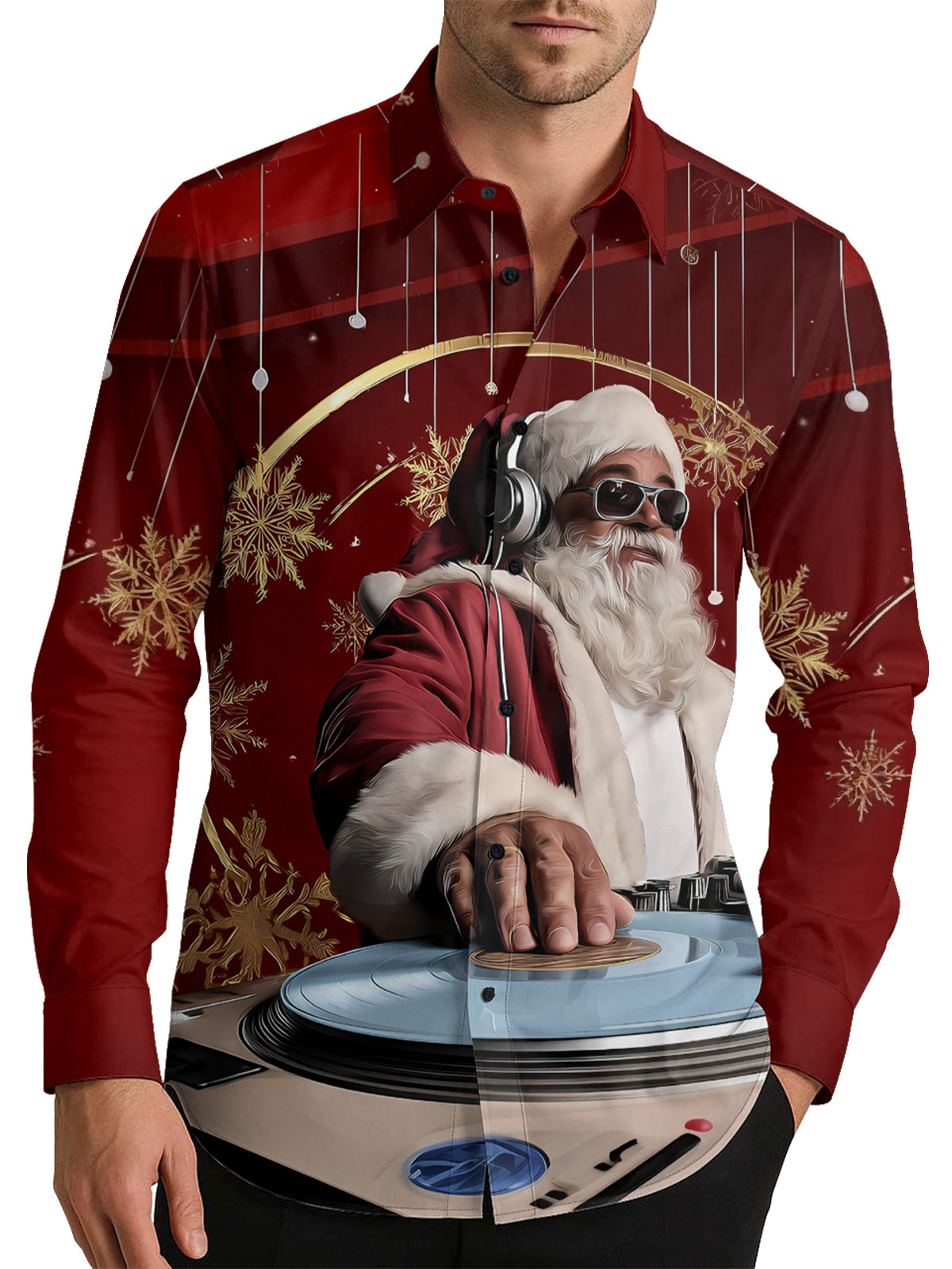 DJ Santa Claus Men's Shirt Long Sleeve Button Up Shirt