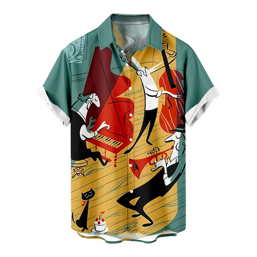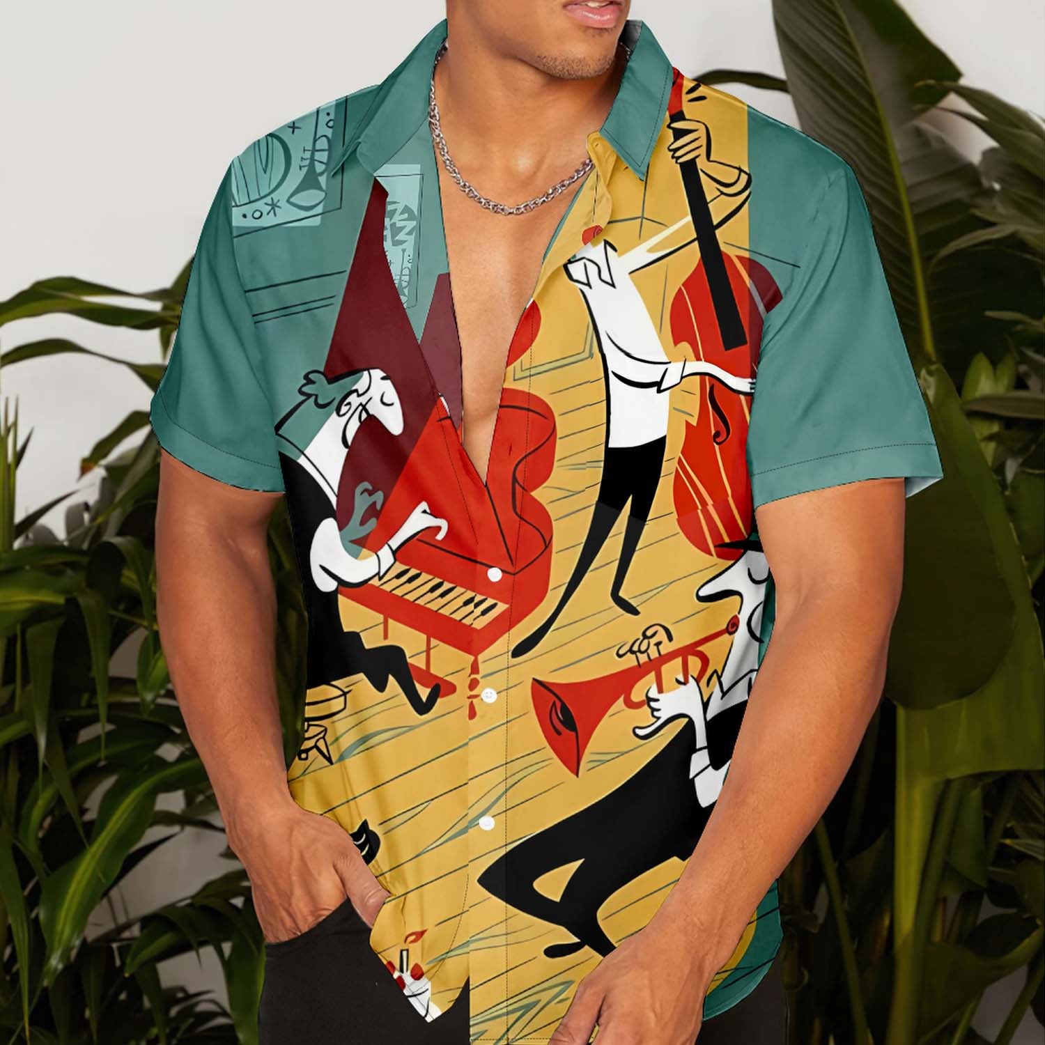 Jazz Cat Club Mid-century Art Men's Pocket Shirt Stretch Quick Dry Button Up Shirt