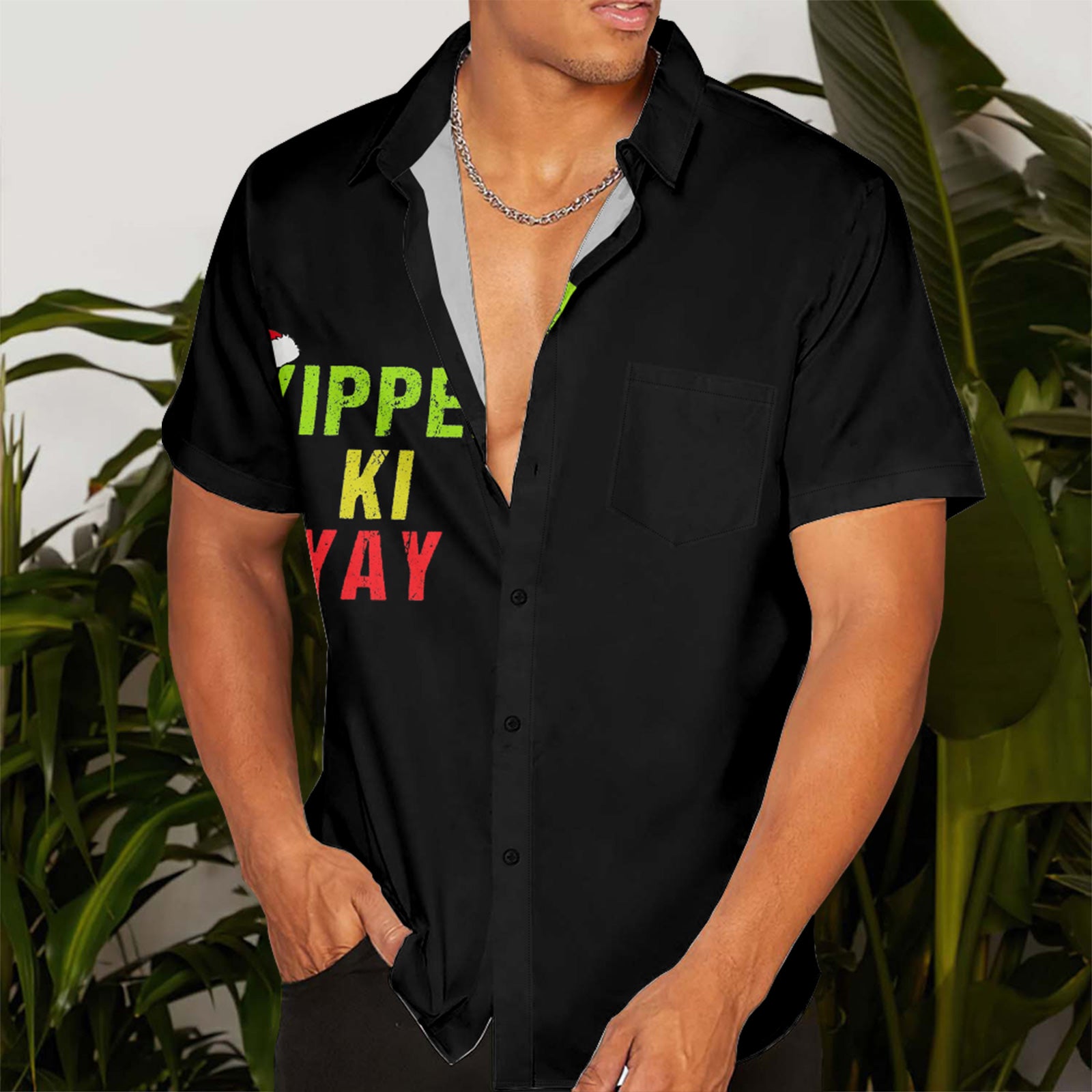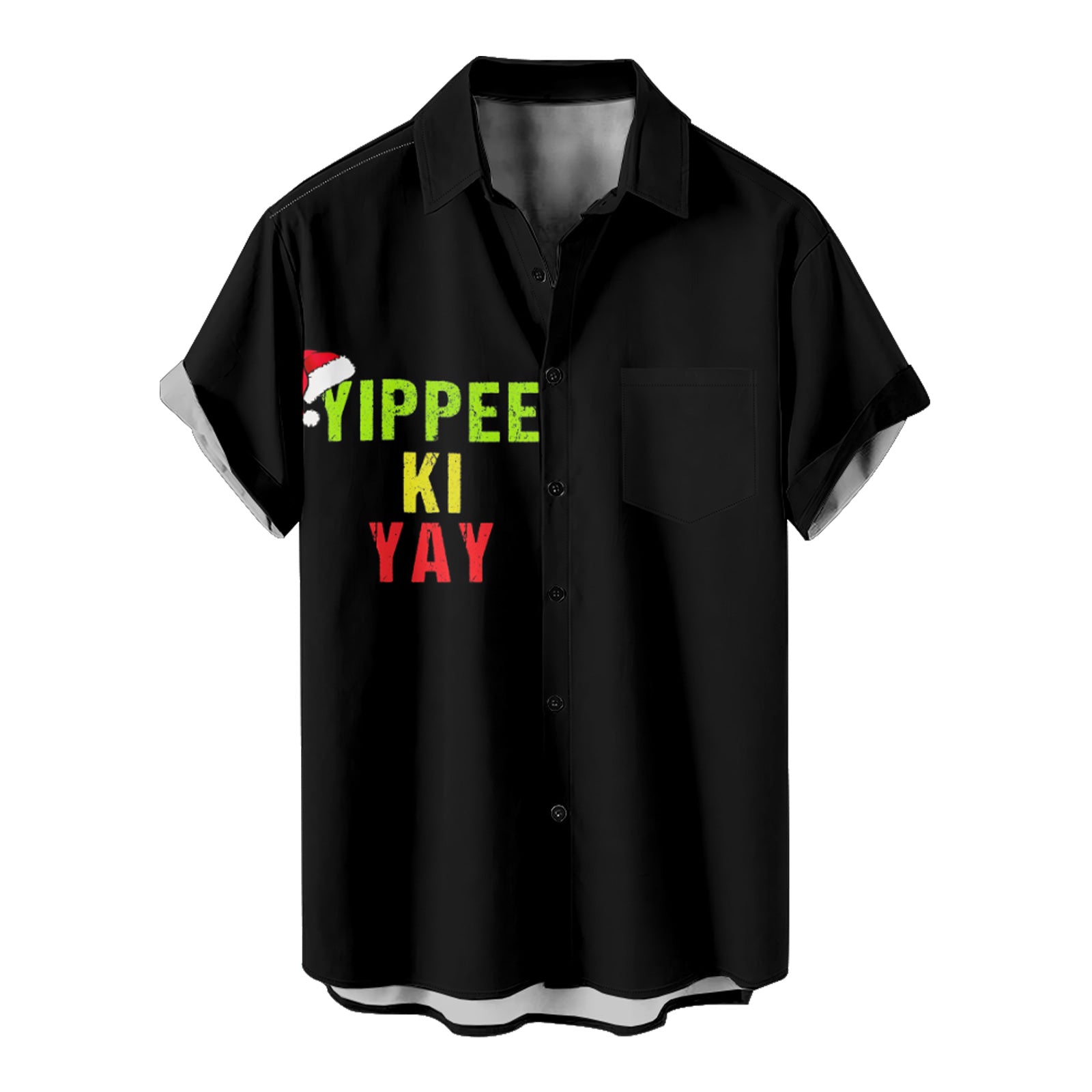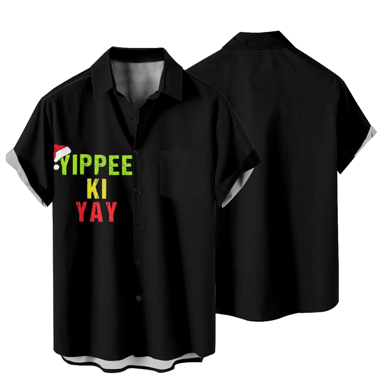 YIPPEE-KI-YAY Christmas Men's Pocket Shirt Stretch Quick Dry Button Up Shirt
