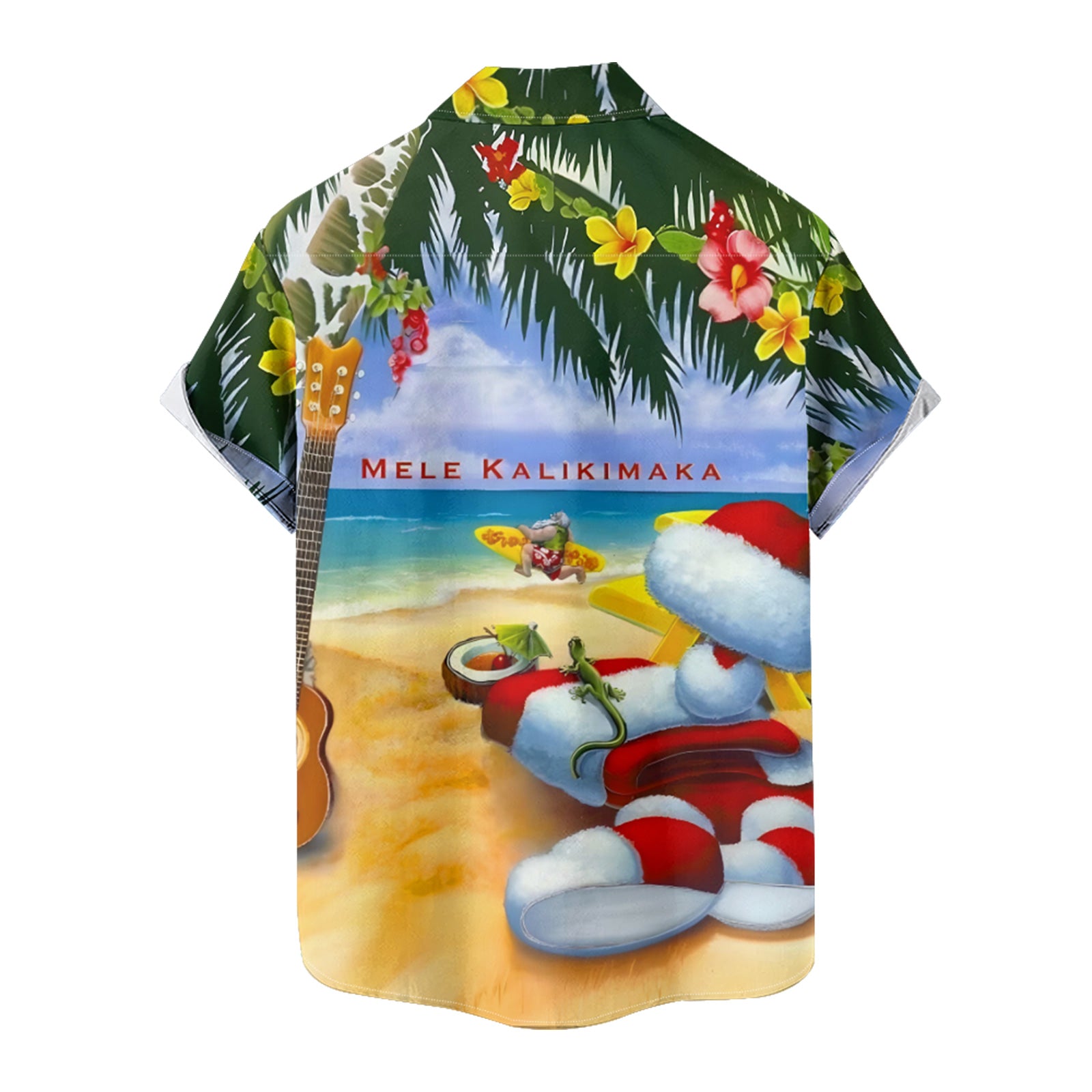 Mele Kalikimaka Merry Christmas Men's Pocket Shirt Stretch Quick Dry Button Up Shirt