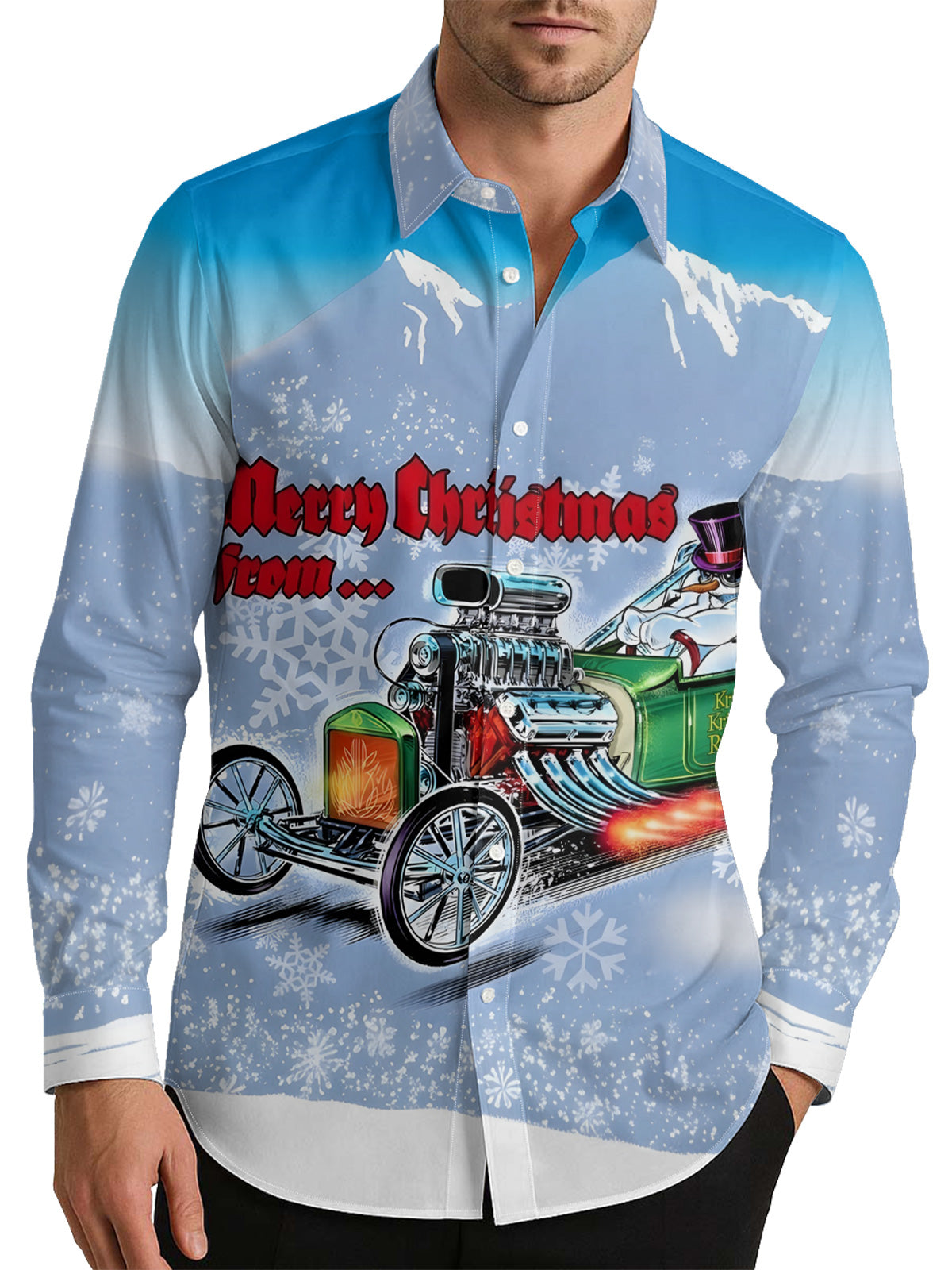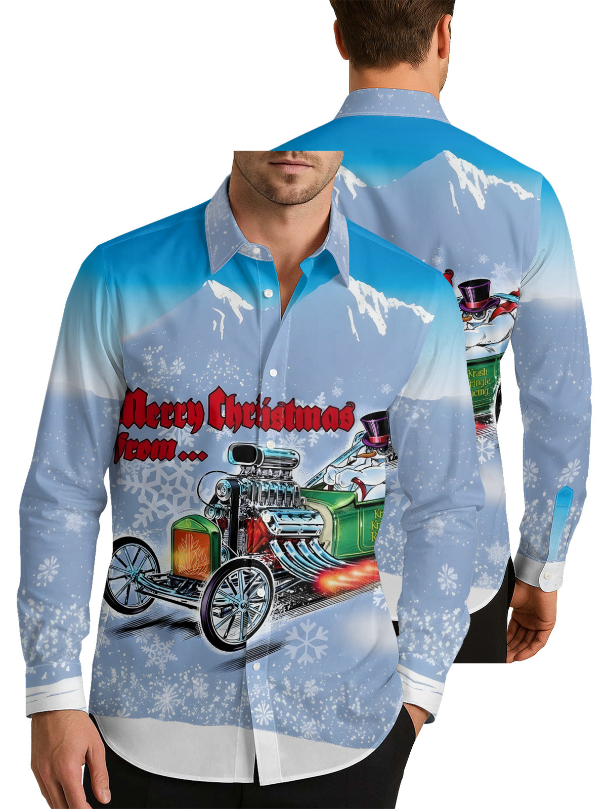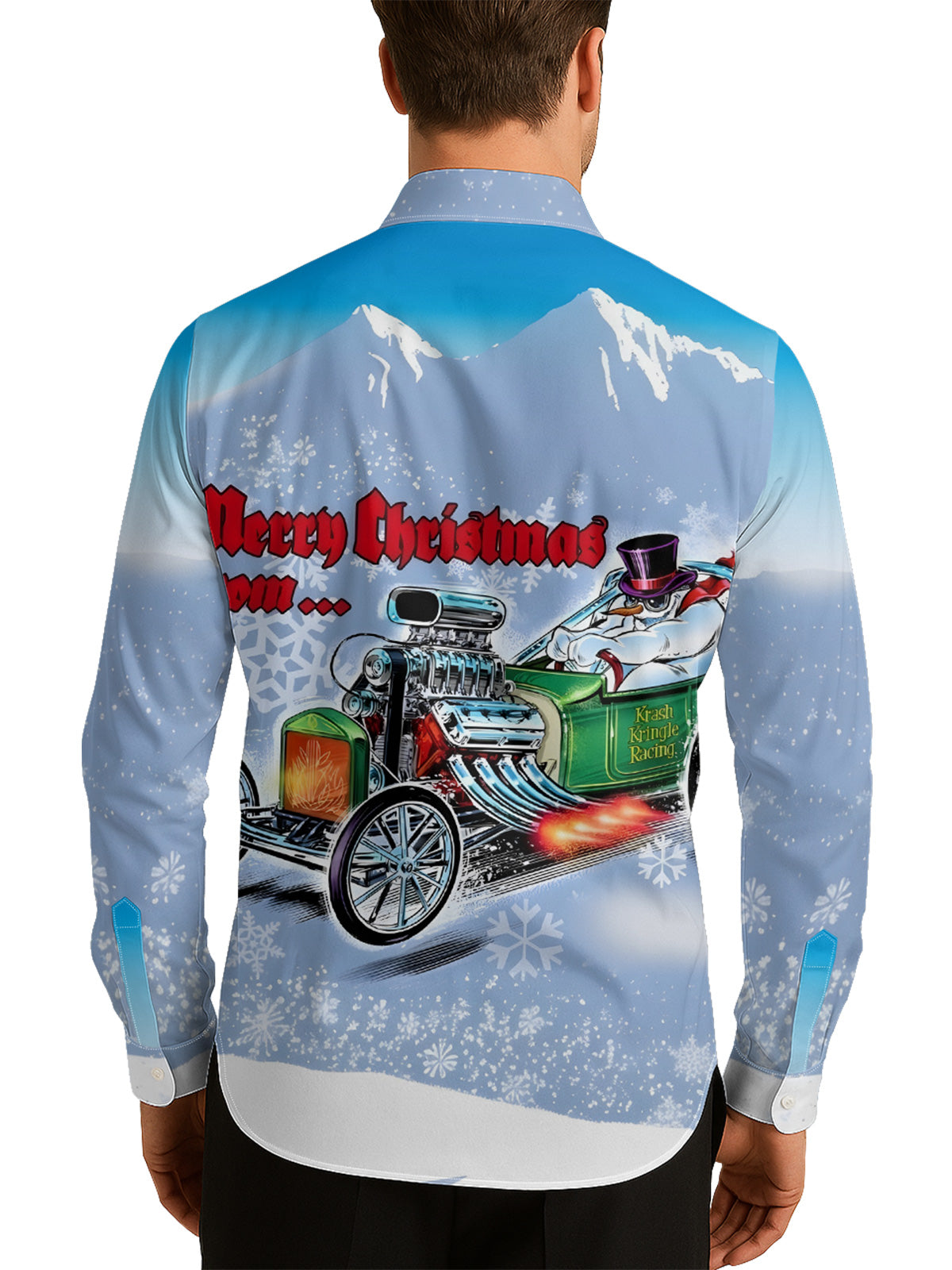 Merry Christmas Snow Mountain Sprint Men's Shirt Long Sleeve Button Up Shirt