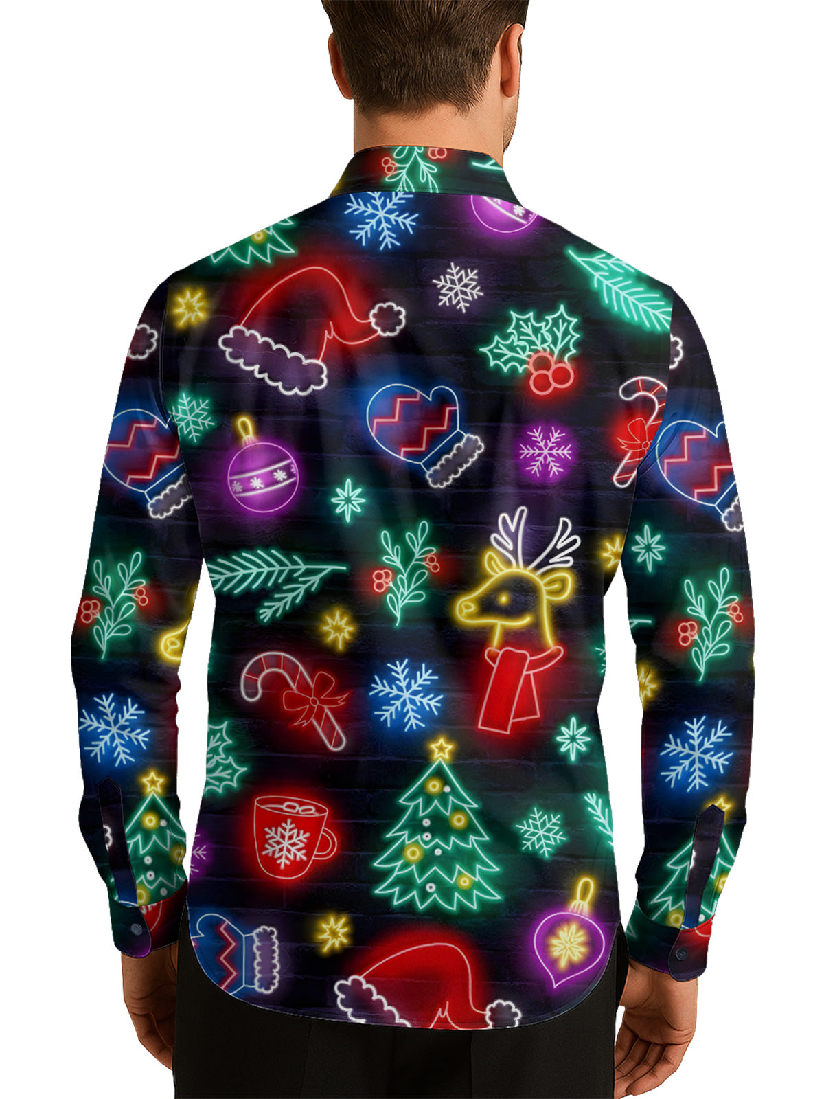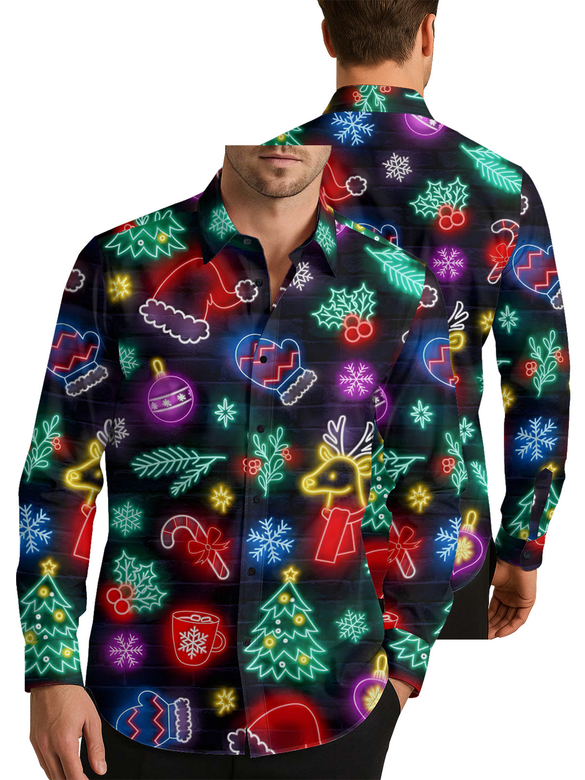 Neon Christmas Elements Men's Shirt Long Sleeve Button Up Shirt