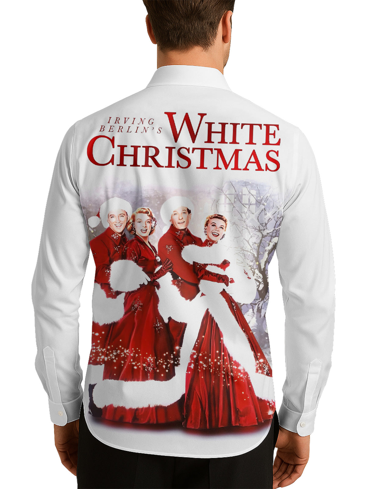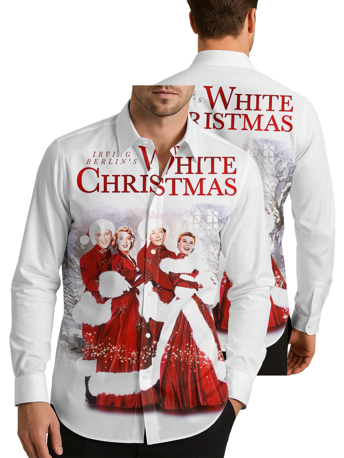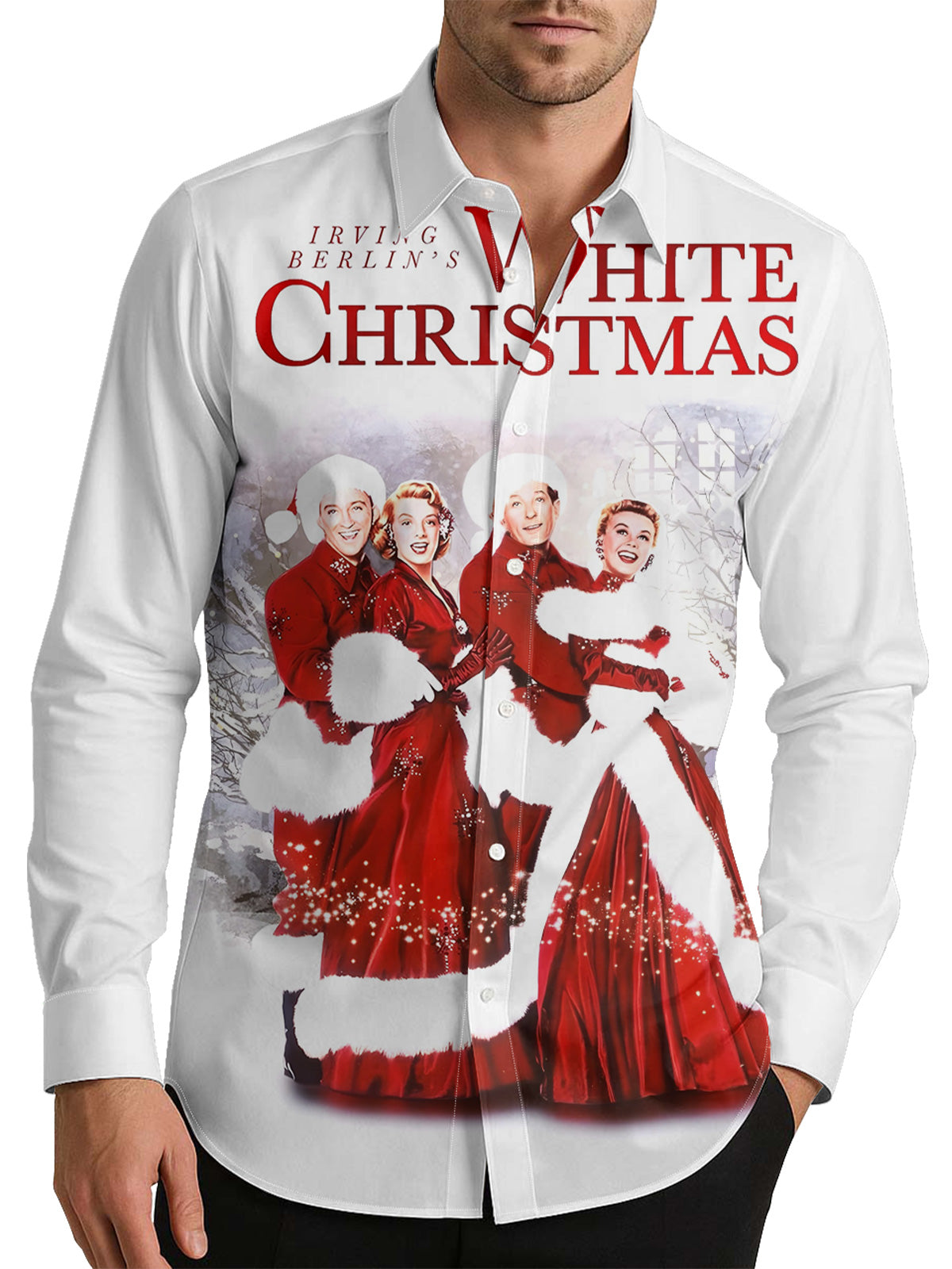 Vintage White Christmas Movie Men's Shirt Long Sleeve Button Up Shirt