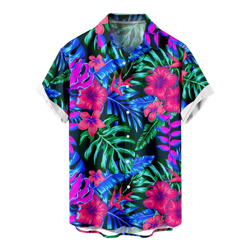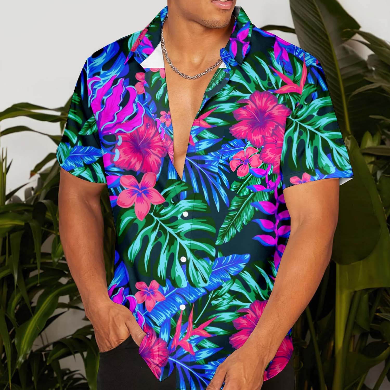 Tropical Neon Vacation Men's Pocket Shirt Stretch Quick Dry Button Up Shirt
