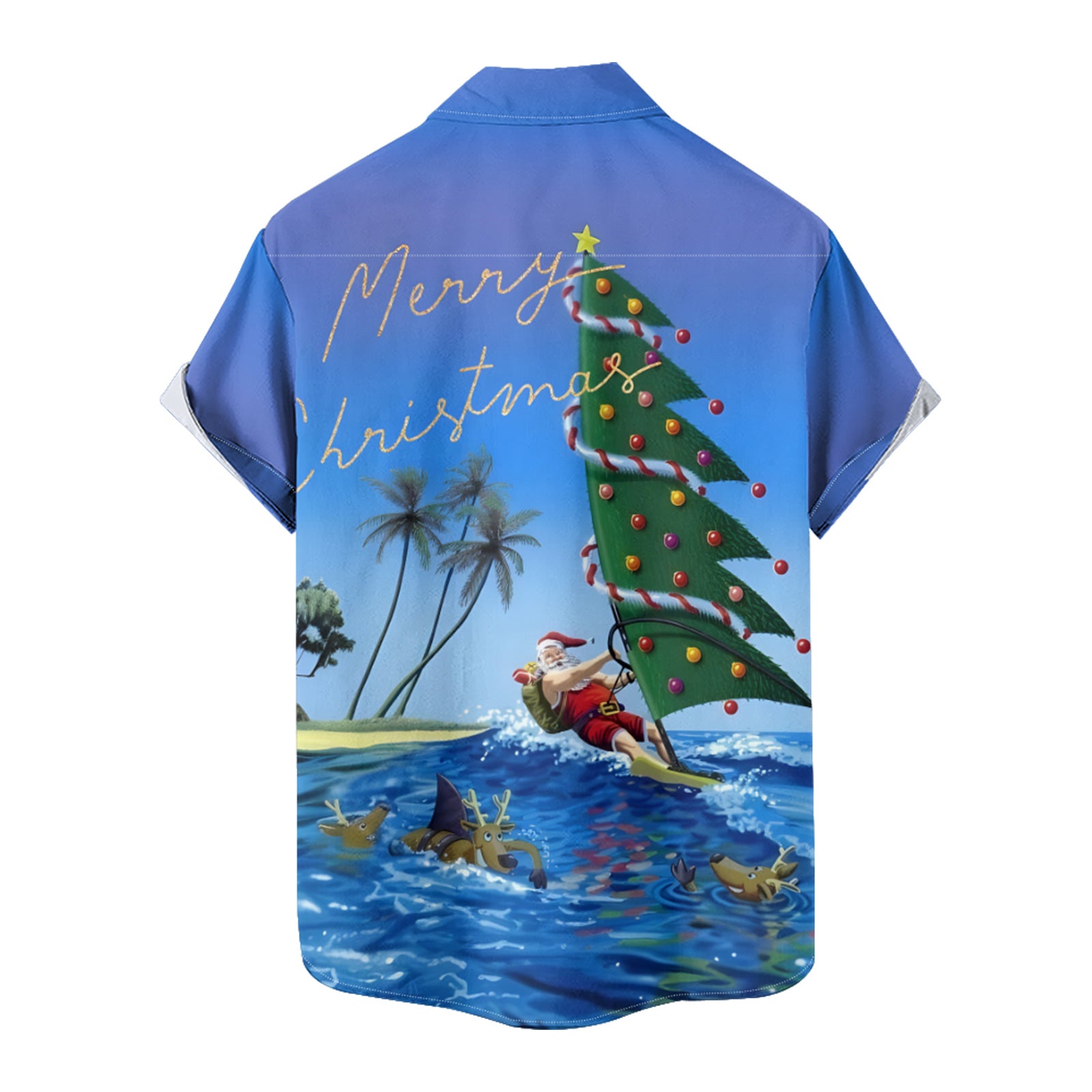 Santa Claus Surfing Christmas Men's Pocket Shirt Stretch Quick Dry Button Up Shirt