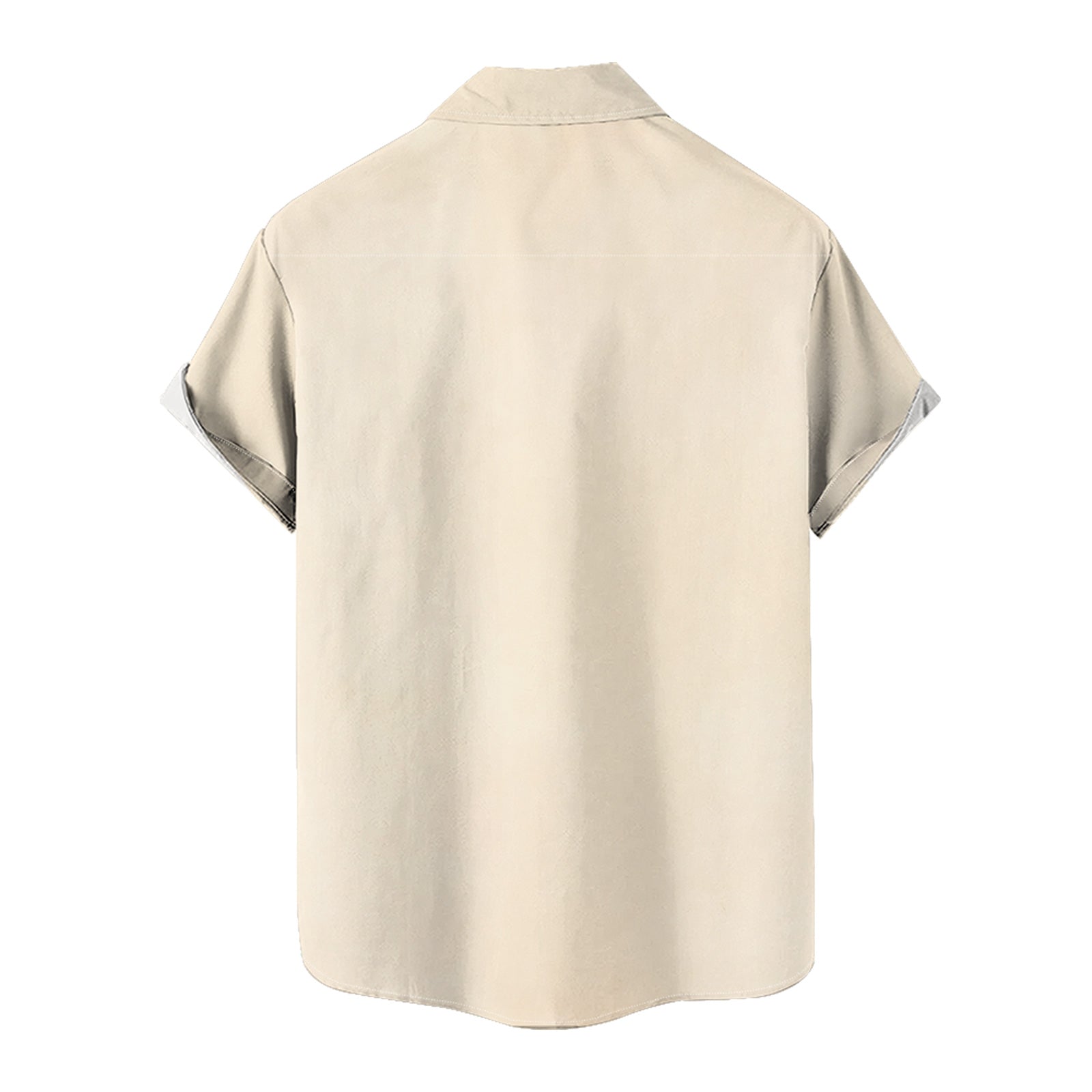 Vintage 50s Cool Two Tone Bowling Men's Breathable Hawaiian Shirt Pocket Camp Shirt