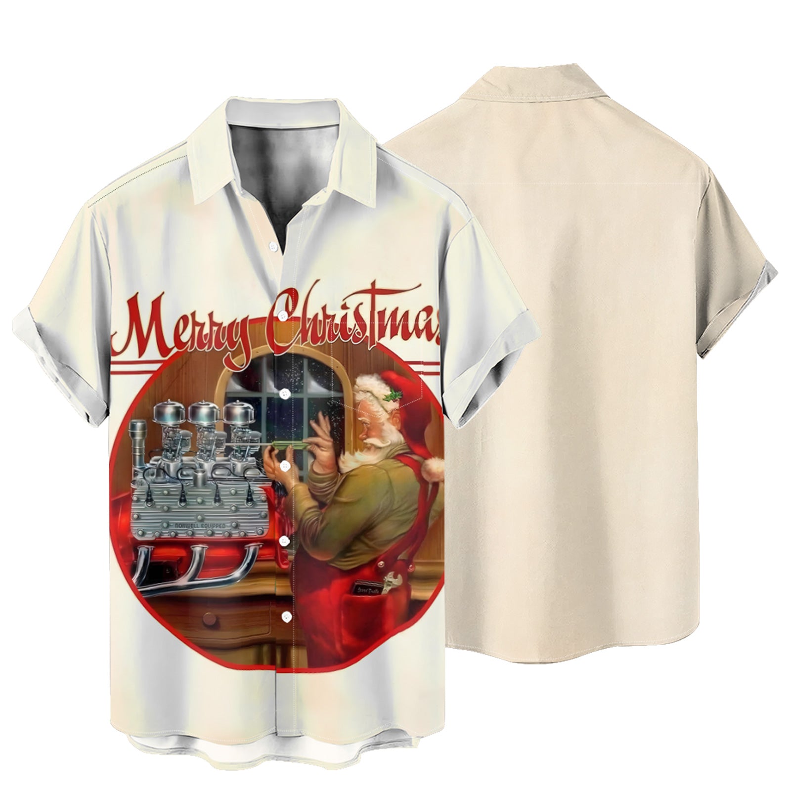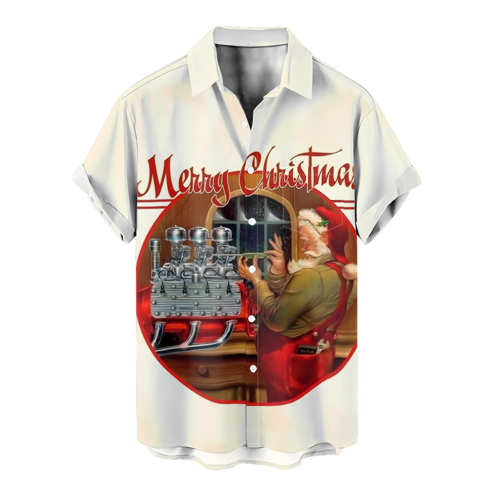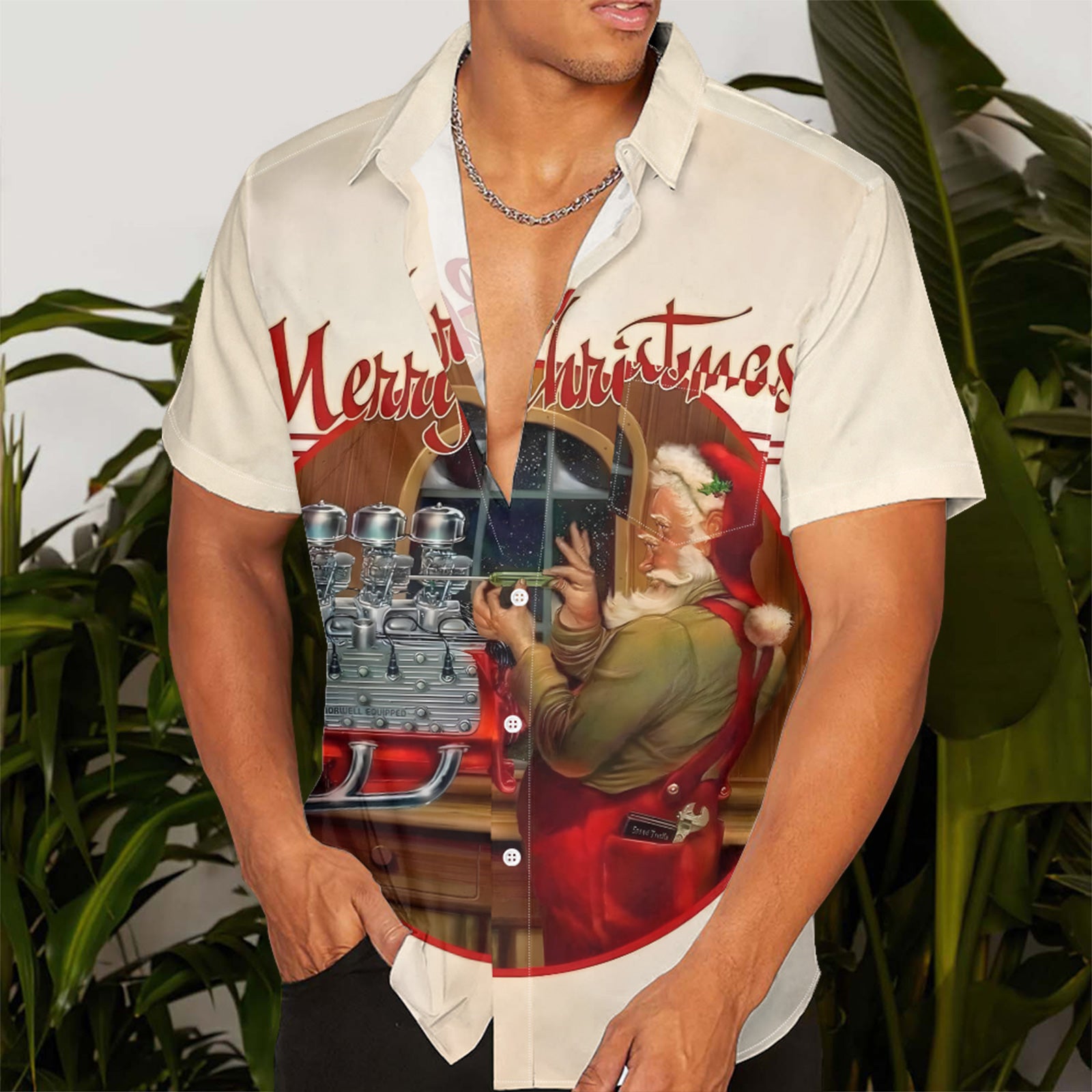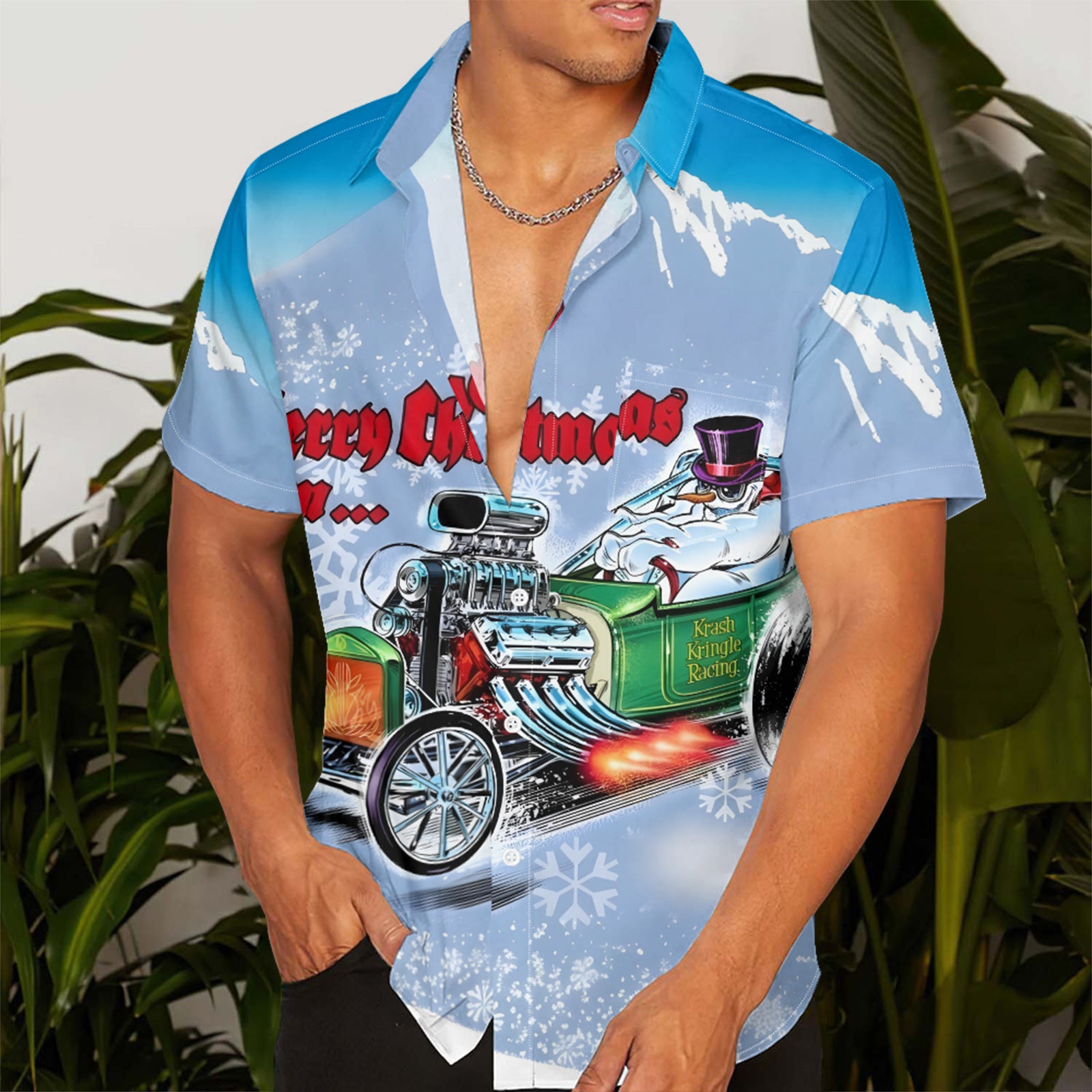 Vintage Hot Rod Merry Christmas Men's Pocket Shirt Stretch Quick Dry Button Up Shirt