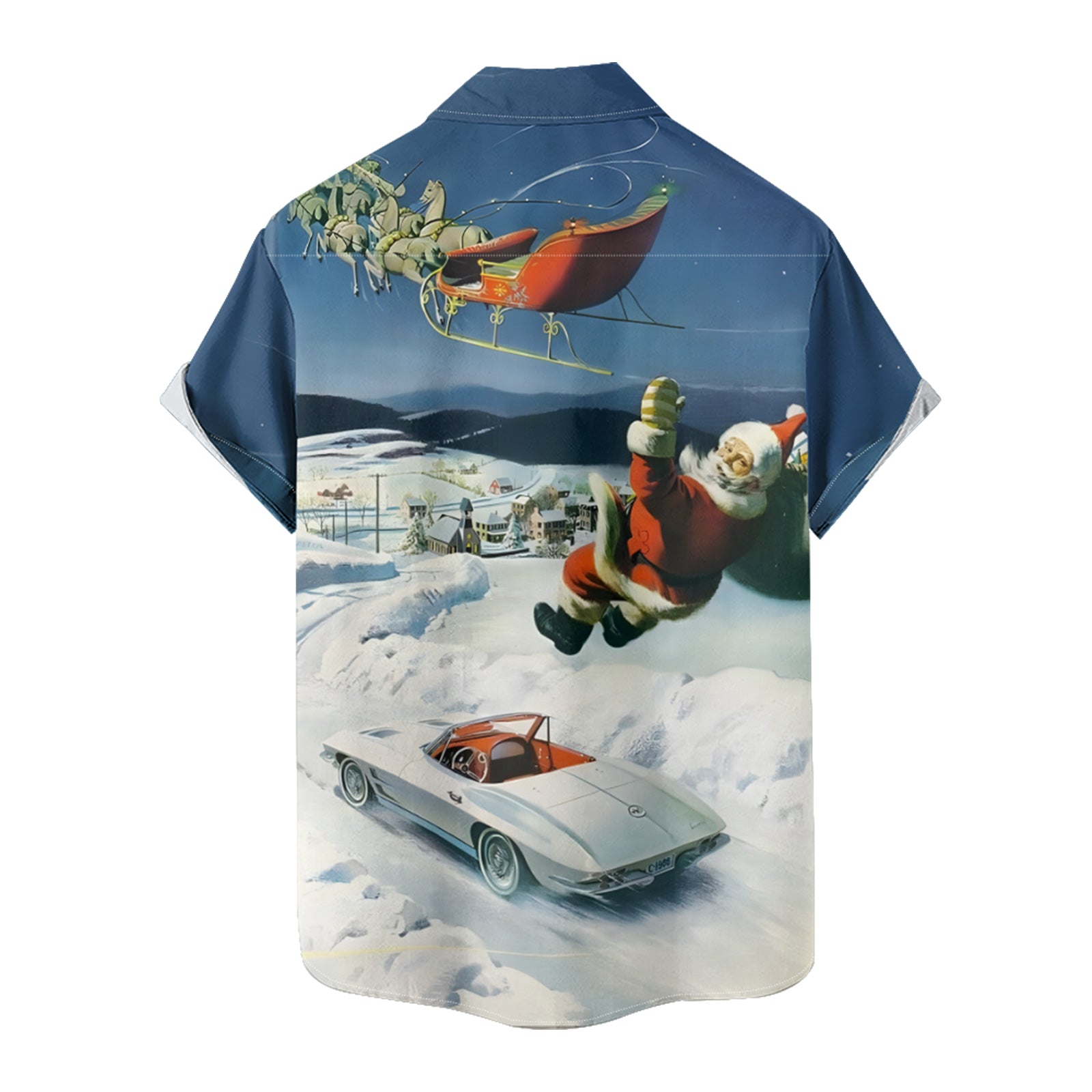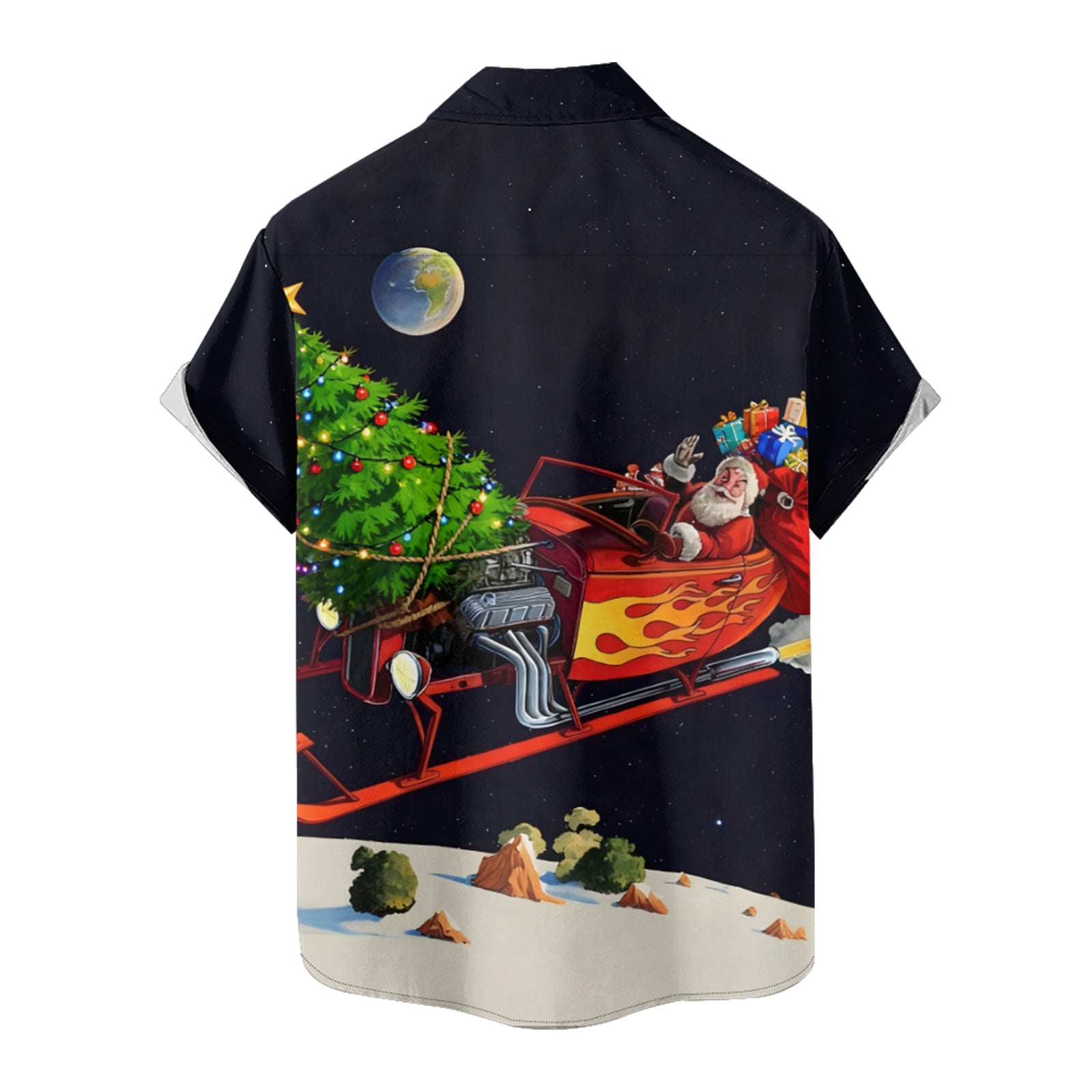 Santa's Cosmic Hot Rod Men's Pocket Shirt Stretch Quick Dry Button Up Shirt