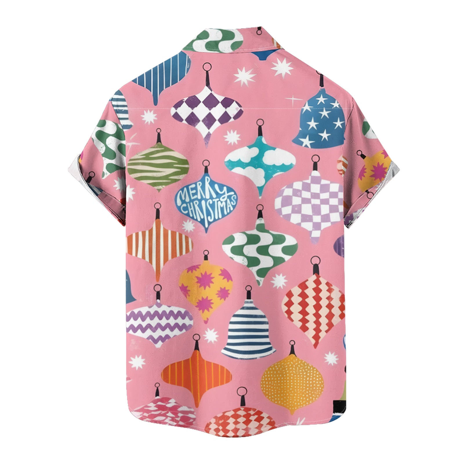 Christmas Baubles Pink Men's Pocket Shirt Stretch Quick Dry Button Up Shirt