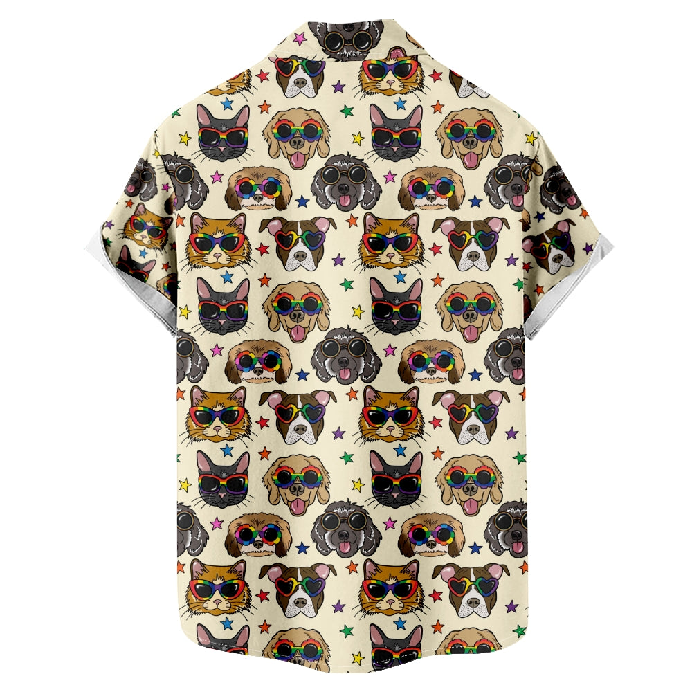 Dogs Sunglasses Men's Pocket Shirt Stretch Quick Dry Button Up Shirt
