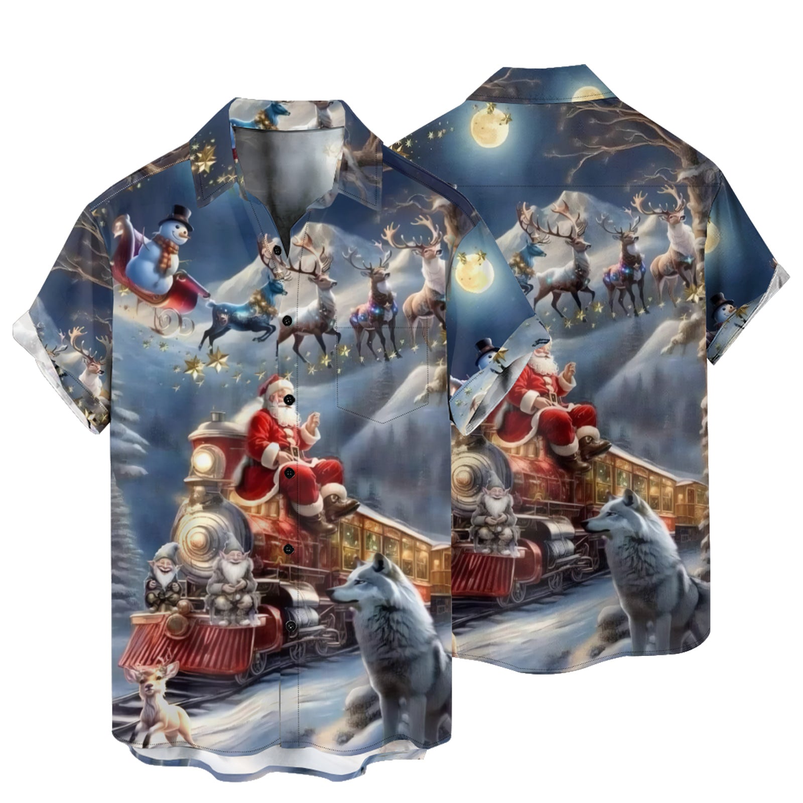 Santa Claus Train Men's Pocket Shirt Stretch Quick Dry Button Up Shirt