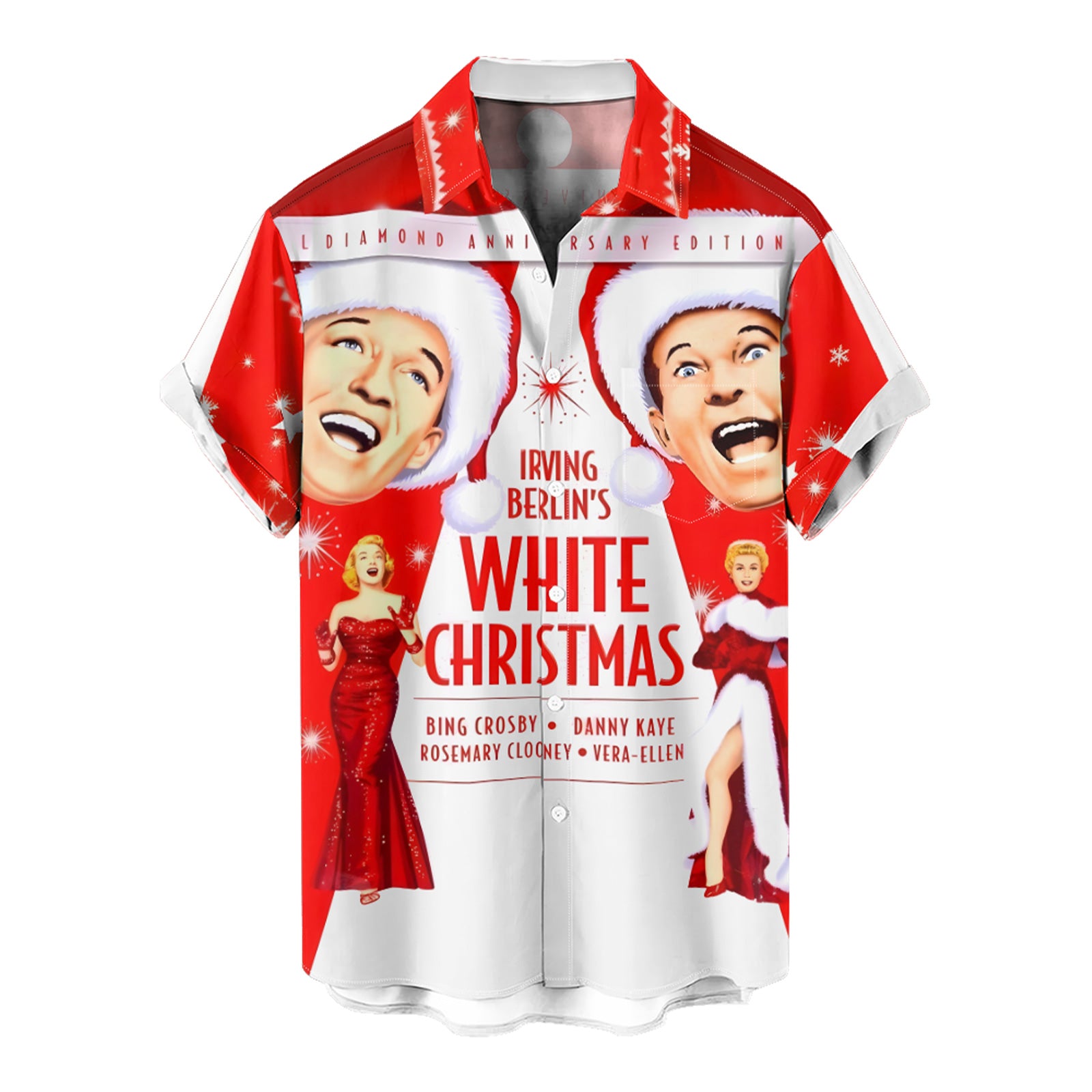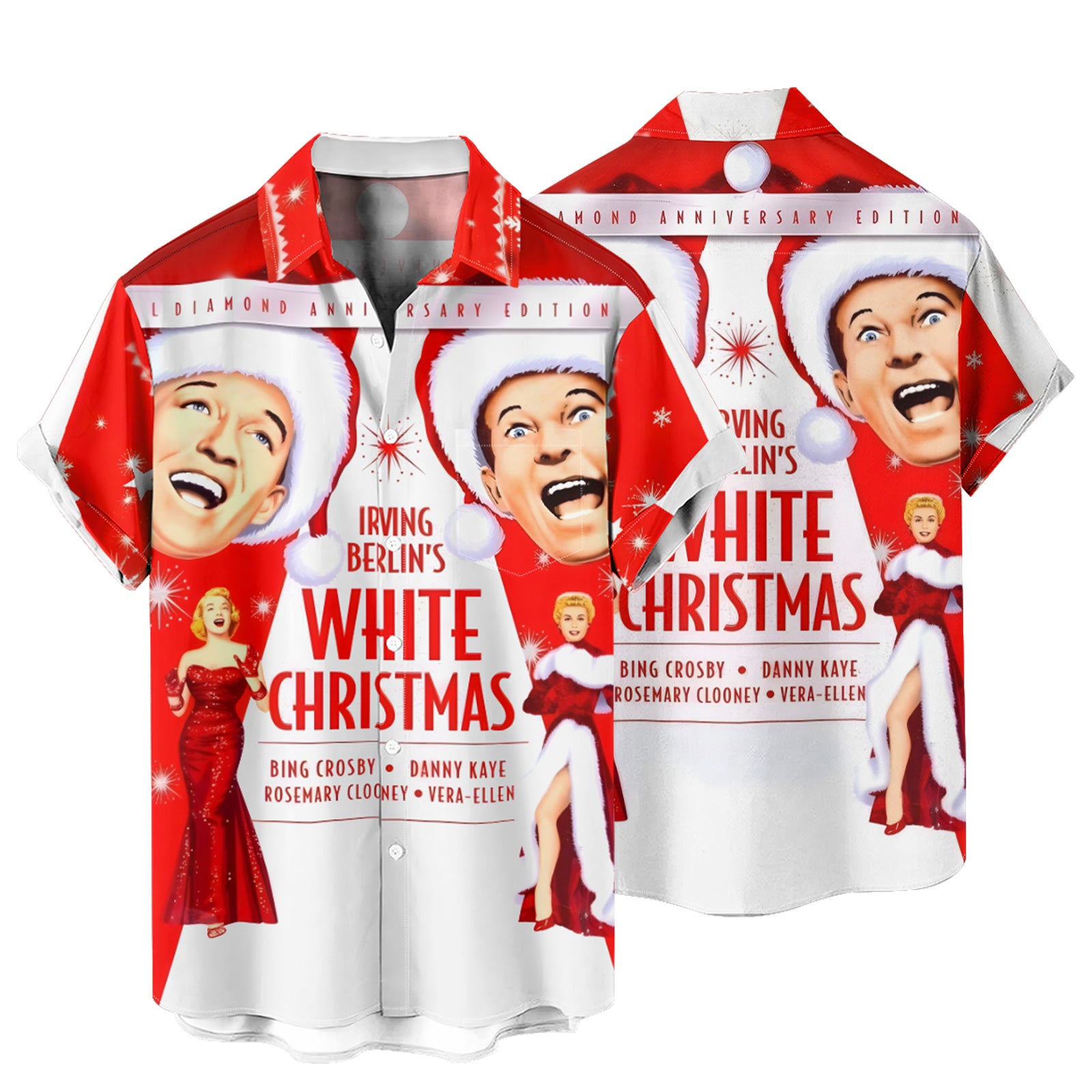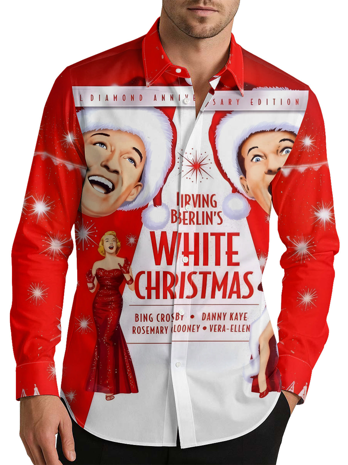 White Christmas Movie Art Men's Pocket Shirt Stretch Quick Dry Button Up Shirt
