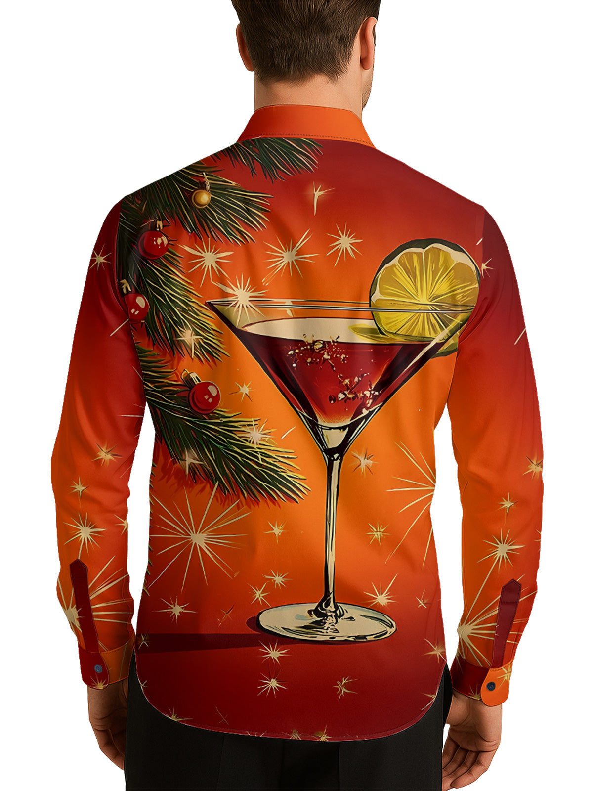 50s Christmas Martini Red Retro Art Men's Shirt Long Sleeve Button Up Shirt