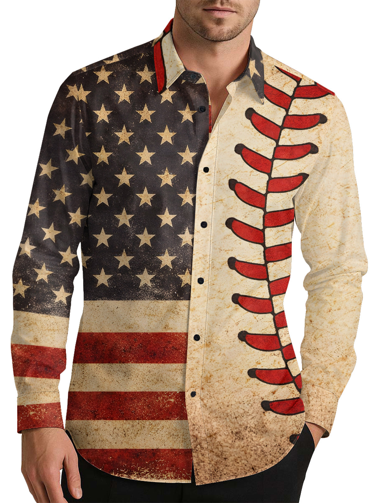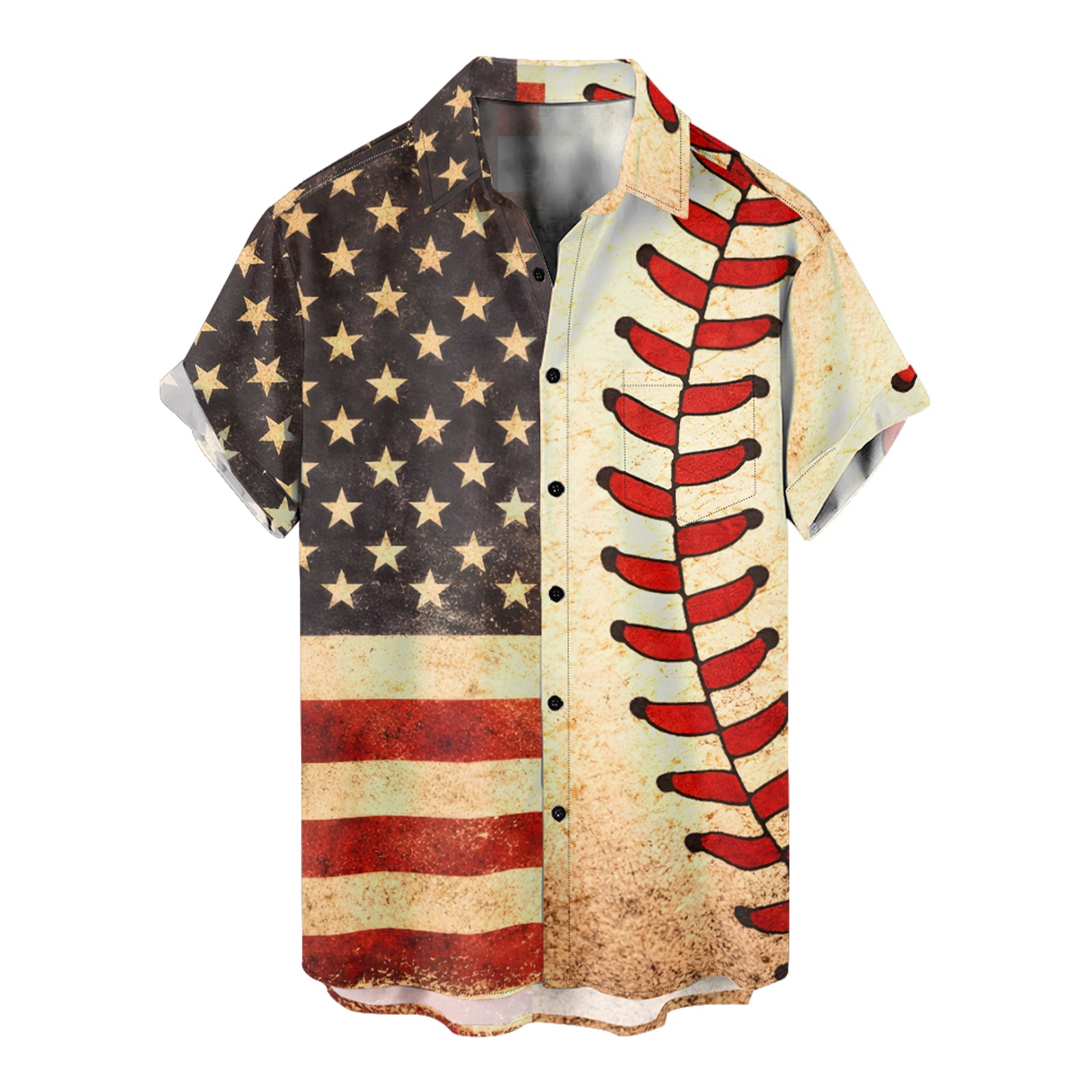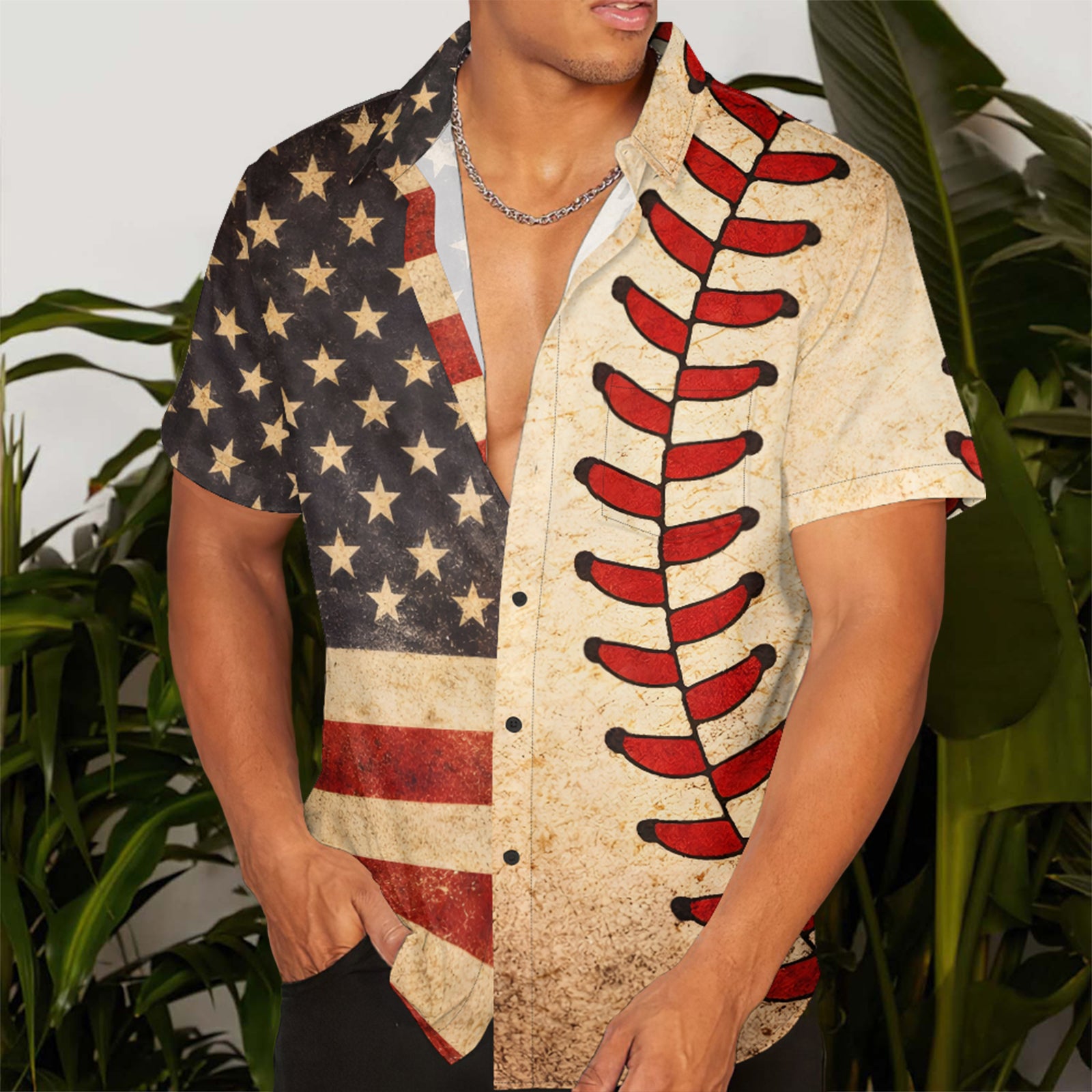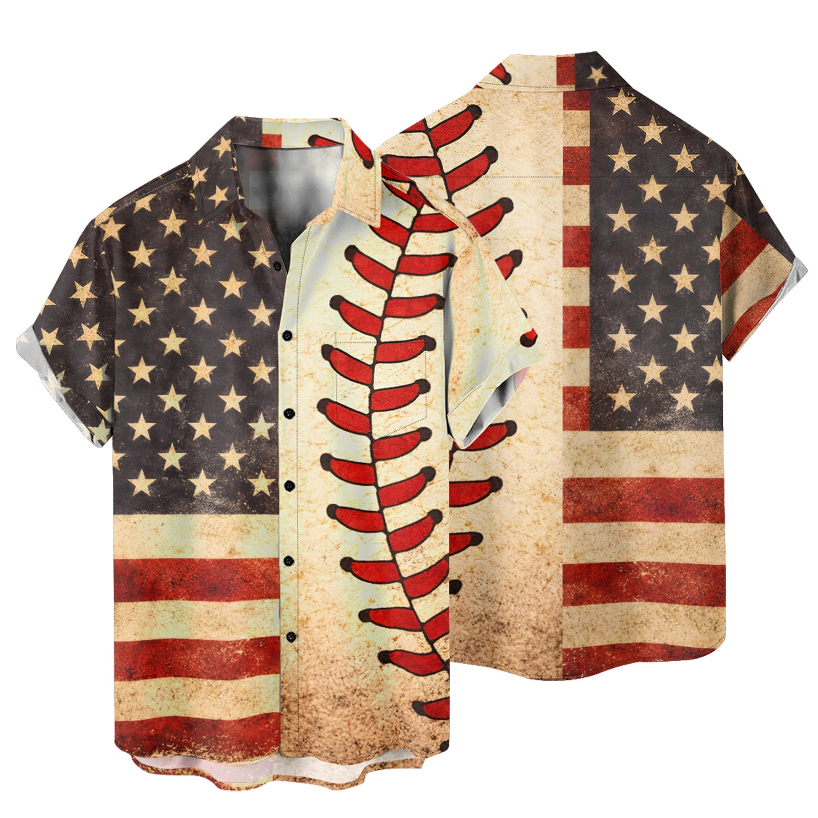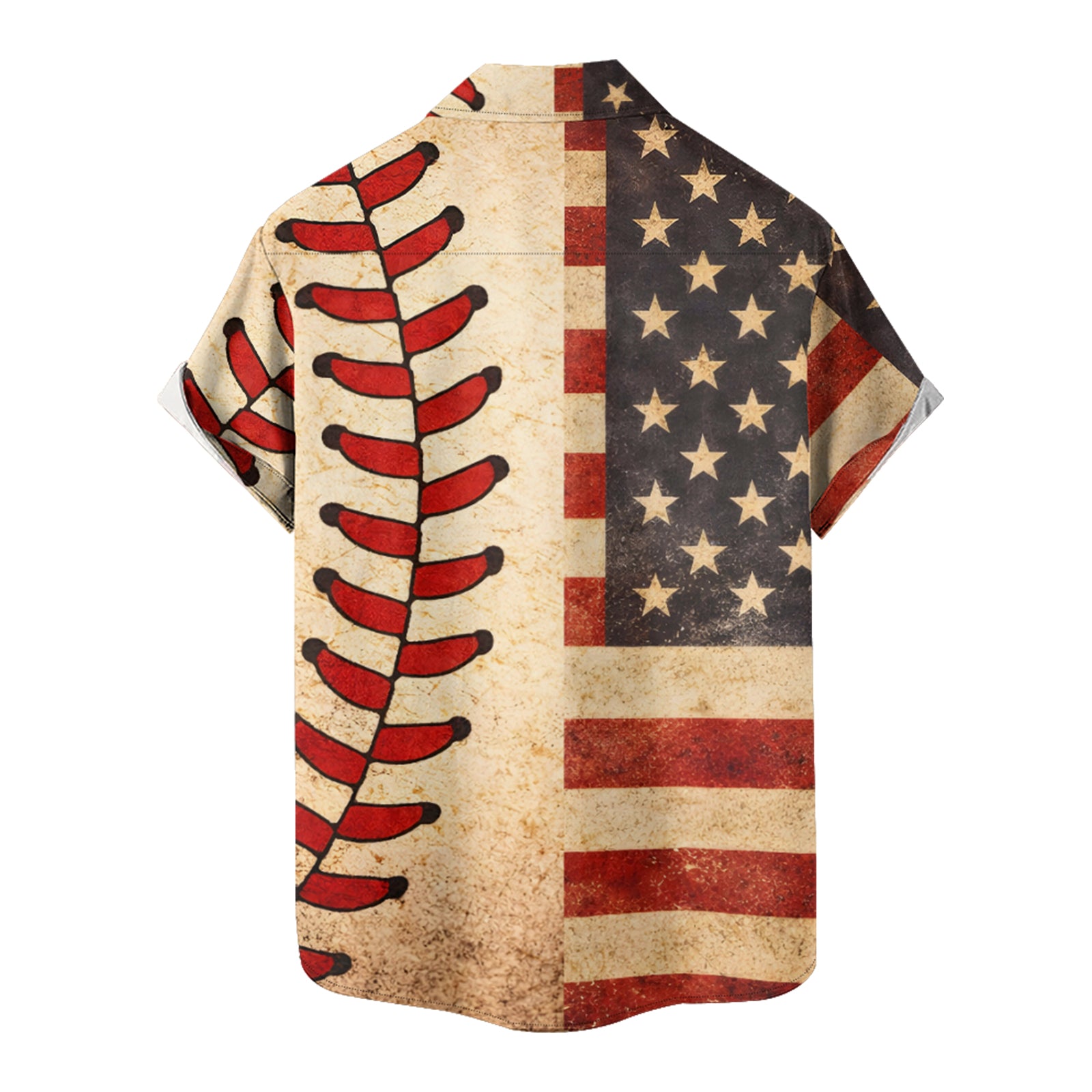 American Flag Vintage Baseball Men's Pocket Shirt Stretch Quick Dry Button Up Shirt