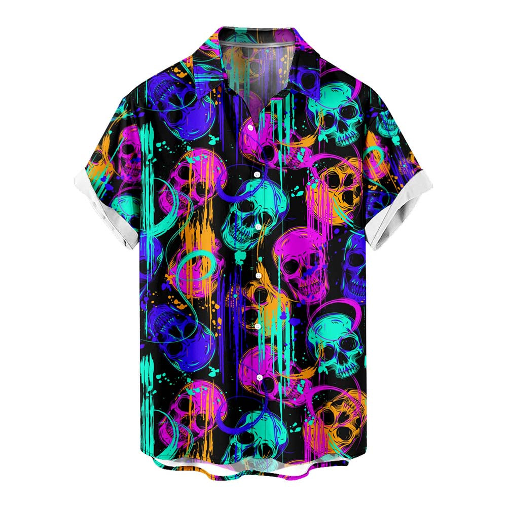 Art Spray-painted Skull Men's Pocket Shirt Stretch Quick Dry Button Up Shirt