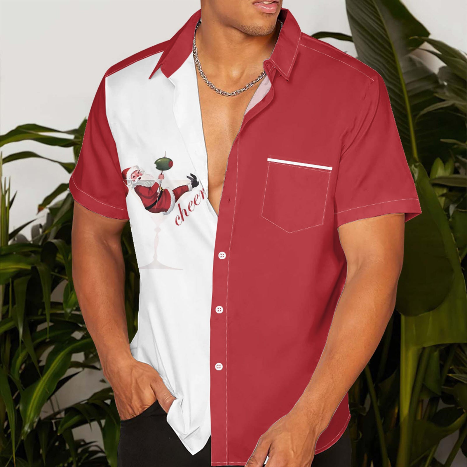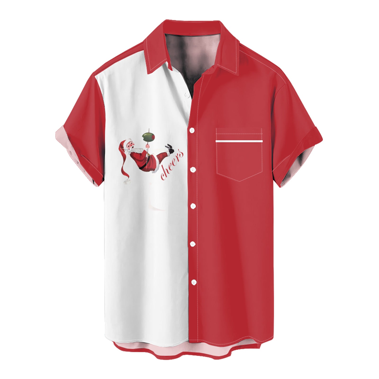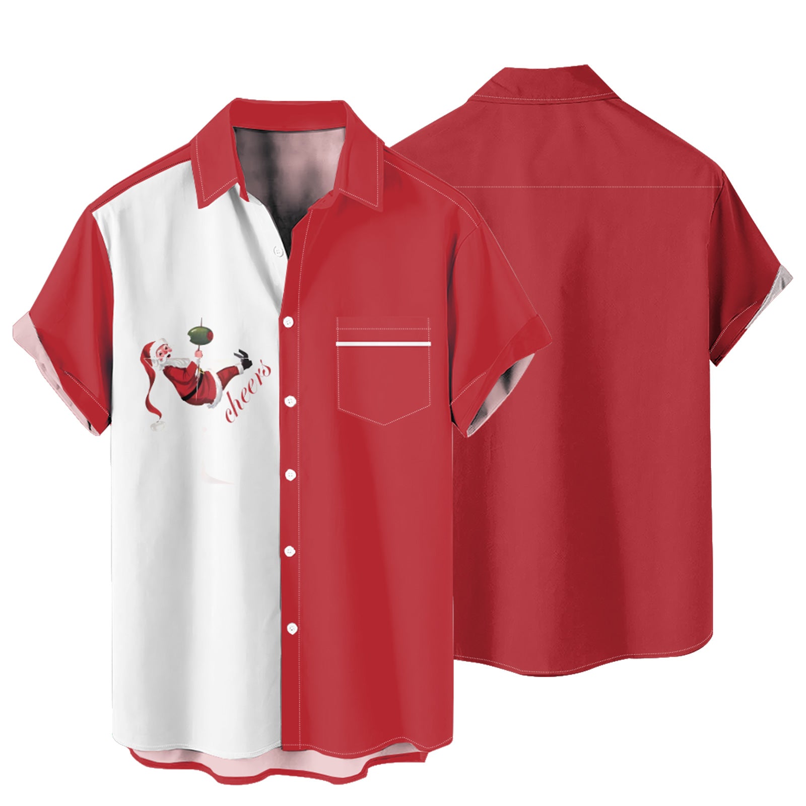 Cheers Santa Christmas Men's Pocket Shirt Stretch Quick Dry Button Up Shirt