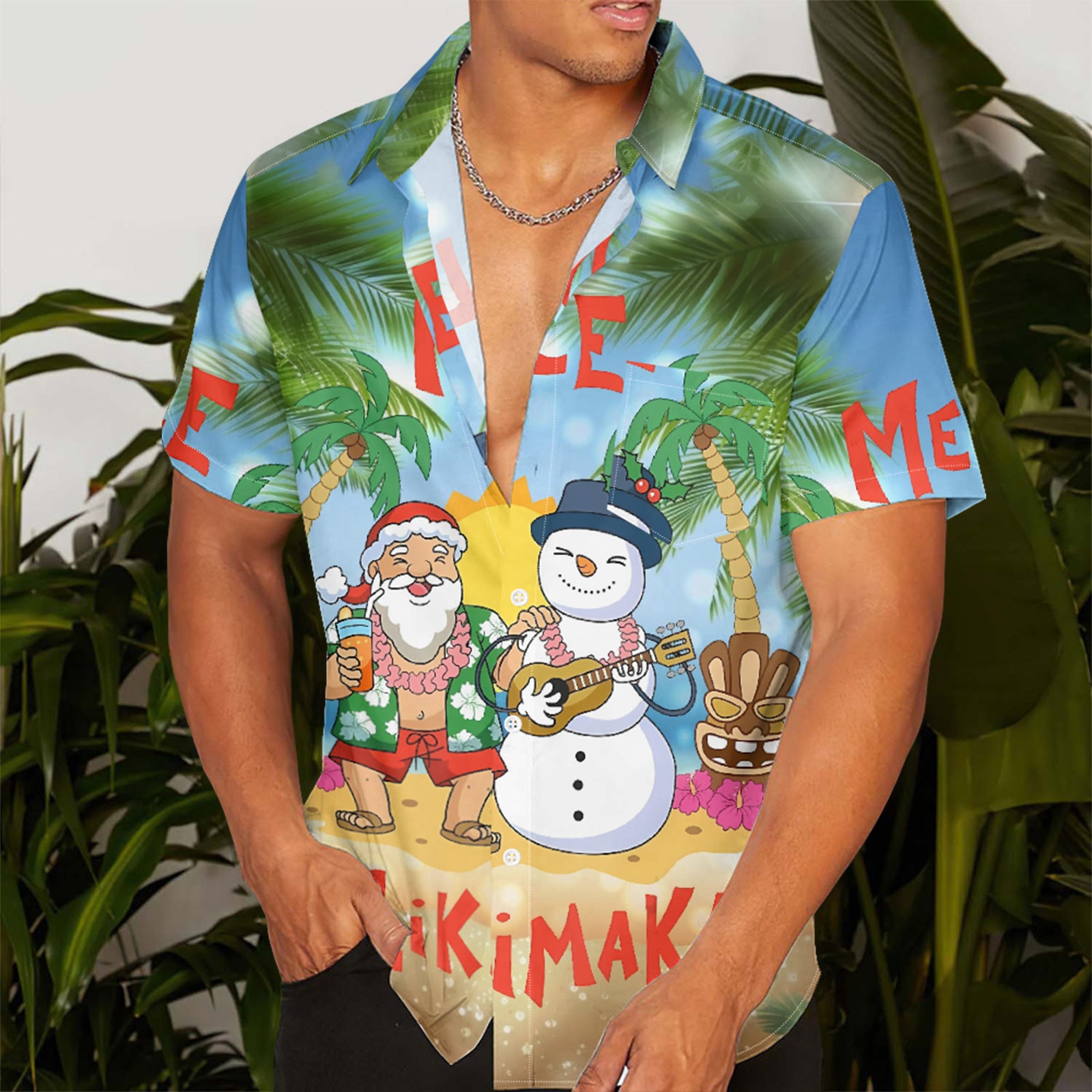 Christmas Beach Vacation Men's Pocket Shirt Stretch Quick Dry Button Up Shirt