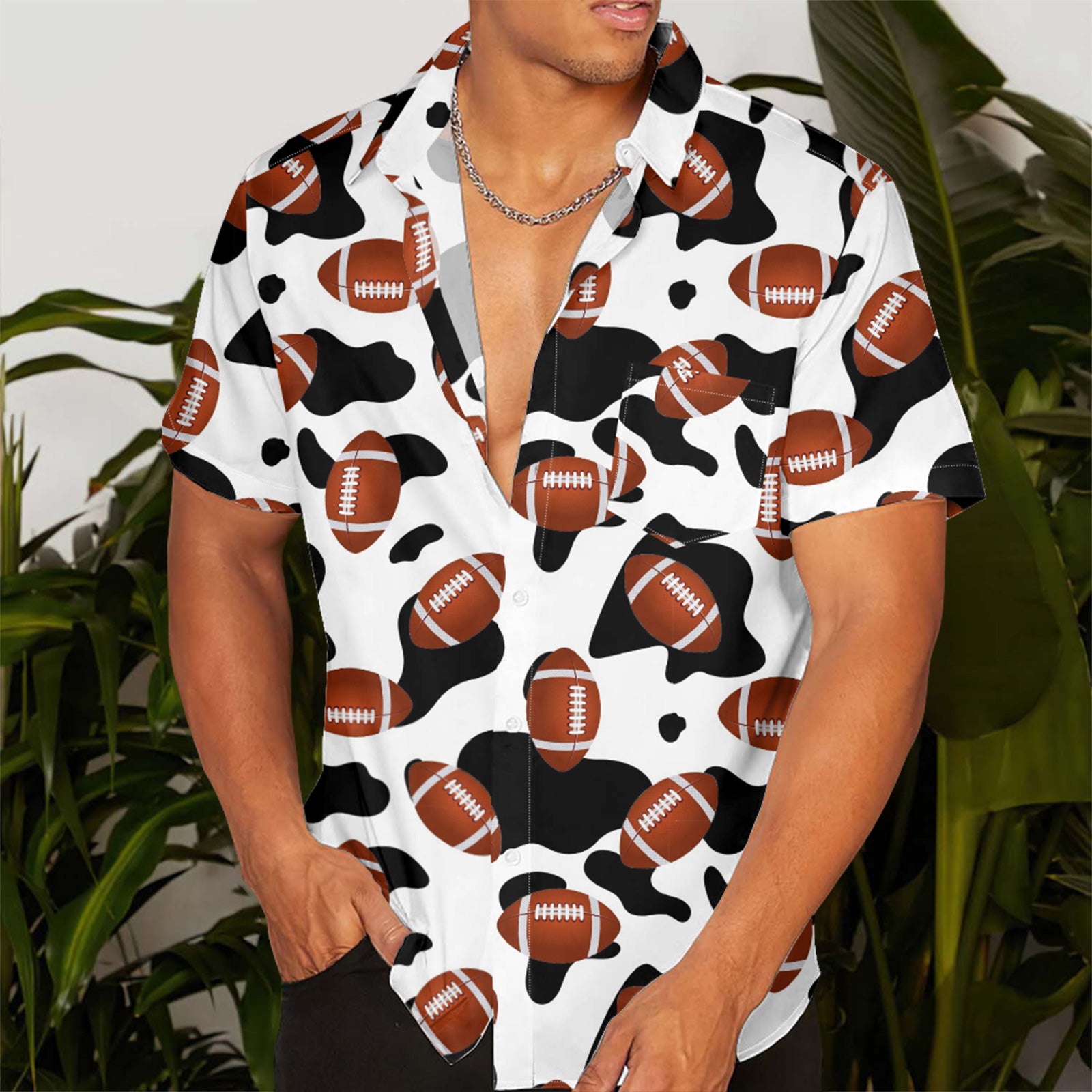 Cow-patterned Football Men's Pocket Shirt Stretch Quick Dry Button Up Shirt