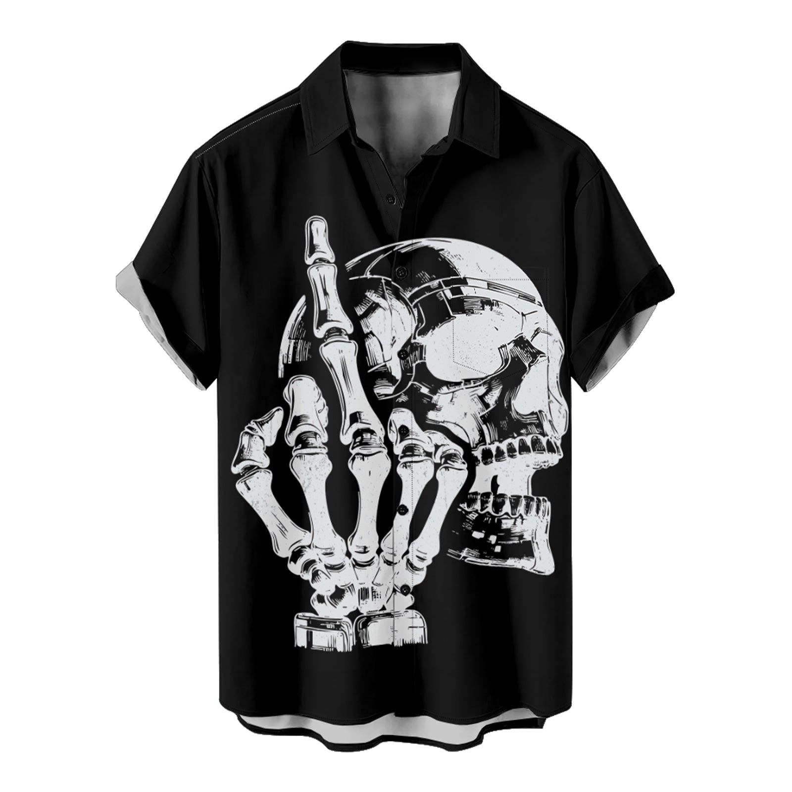 Edgy Skull with Skeleton Hand Men's Shirt Long Sleeve Button Up Shirt