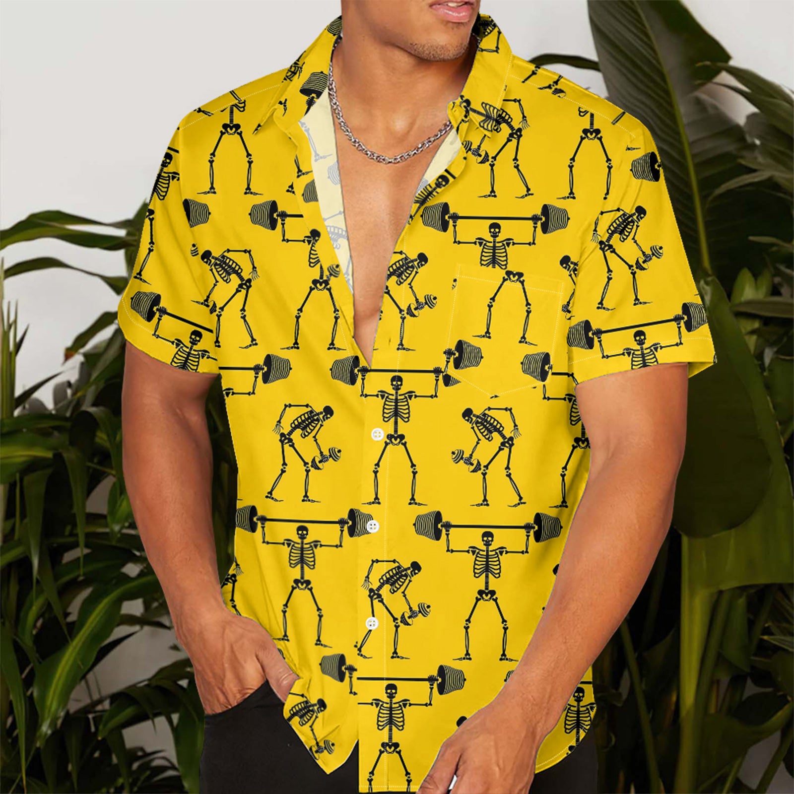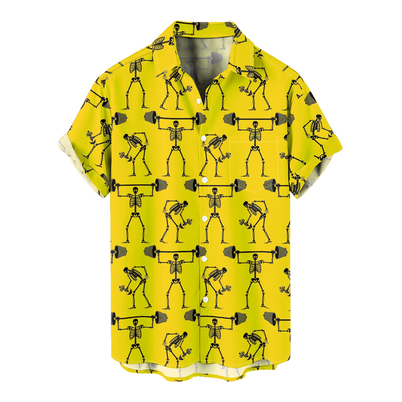 Fitness Skeletons Men's Pocket Shirt Stretch Quick Dry Button Up Shirt