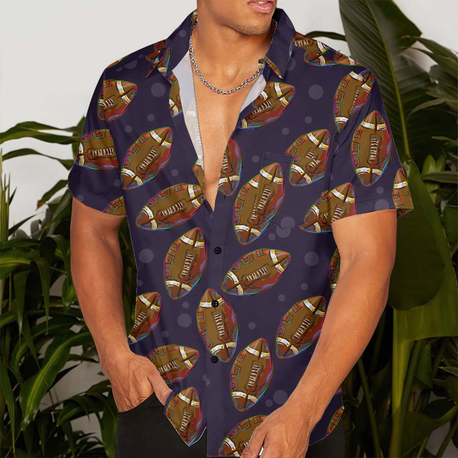 Football Illustrations Print Men's Pocket Shirt Stretch Quick Dry Button Up Shirt