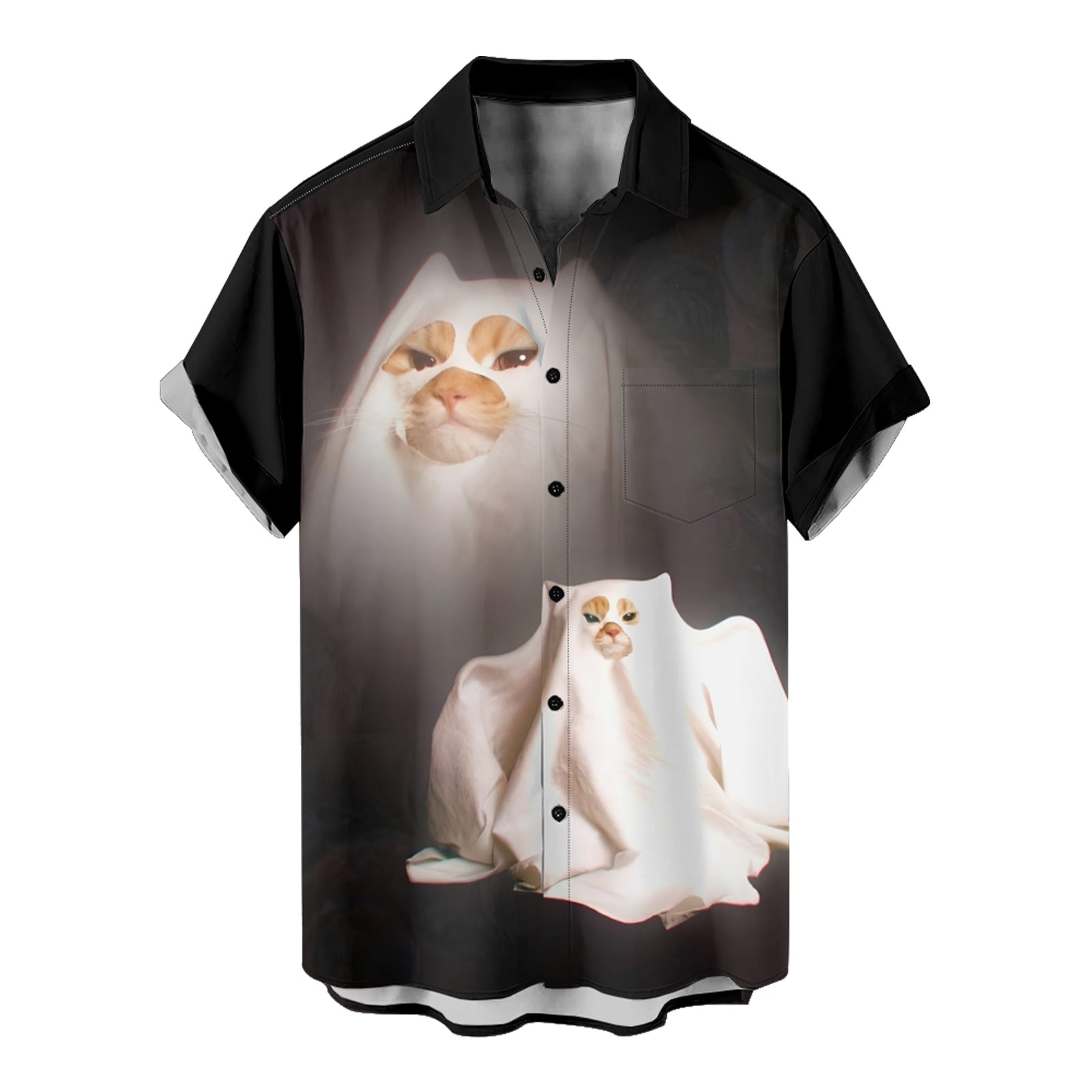 Funny Ghost Kitten Men's Shirt Long Sleeve Button Up Shirt