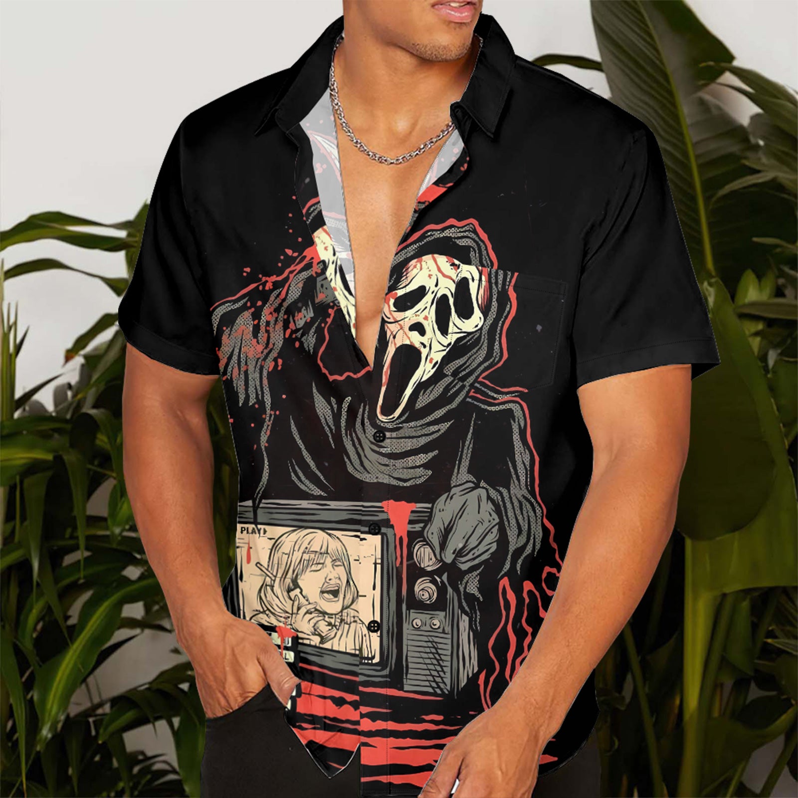 Ghost Face Men's Pocket Shirt Stretch Quick Dry Button Up Shirt