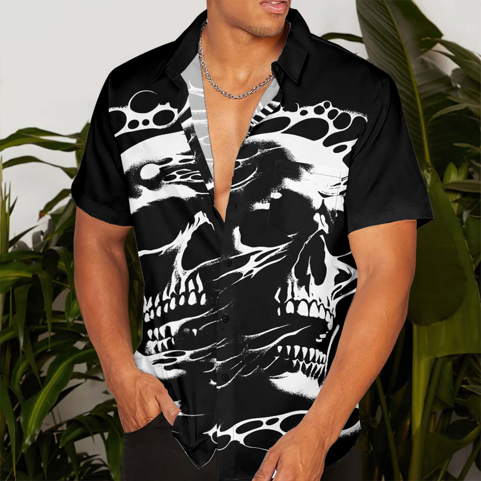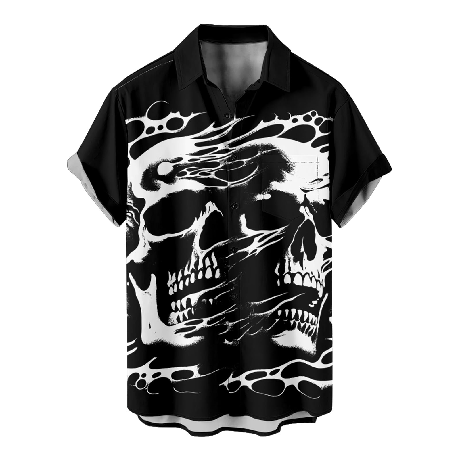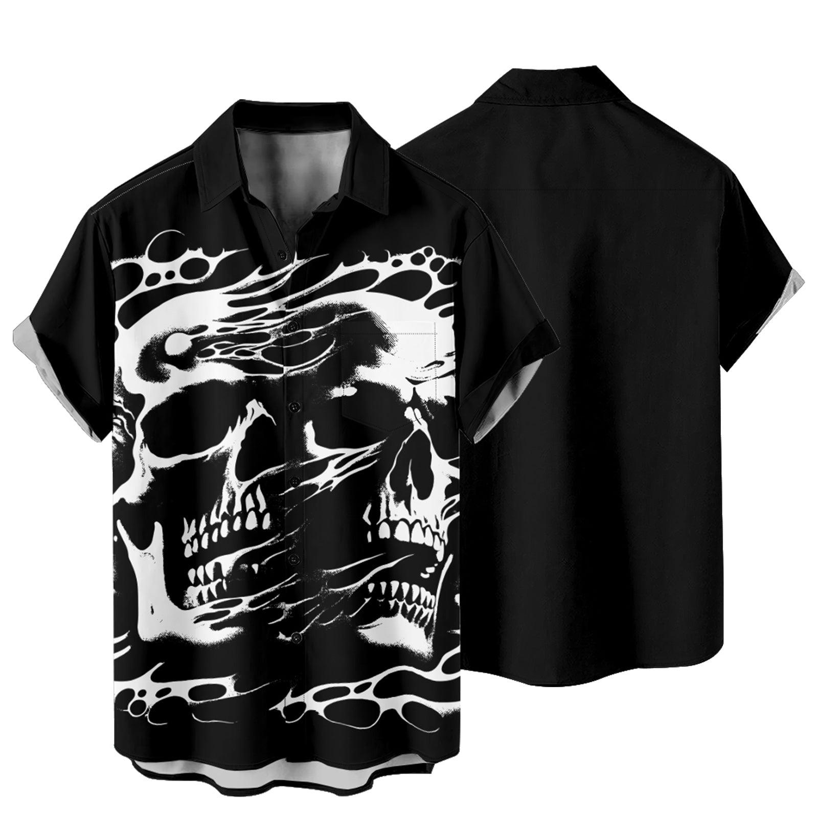 Gothic Skull Design Men's Pocket Shirt Stretch Quick Dry Button Up Shirt