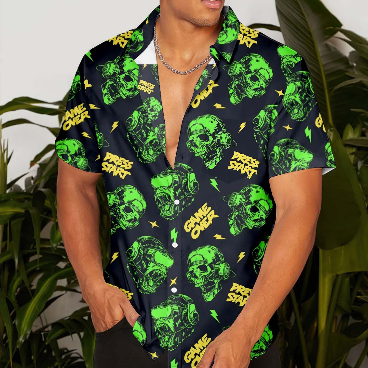 Green Cyber Sports Men's Pocket Shirt Stretch Quick Dry Button Up Shirt