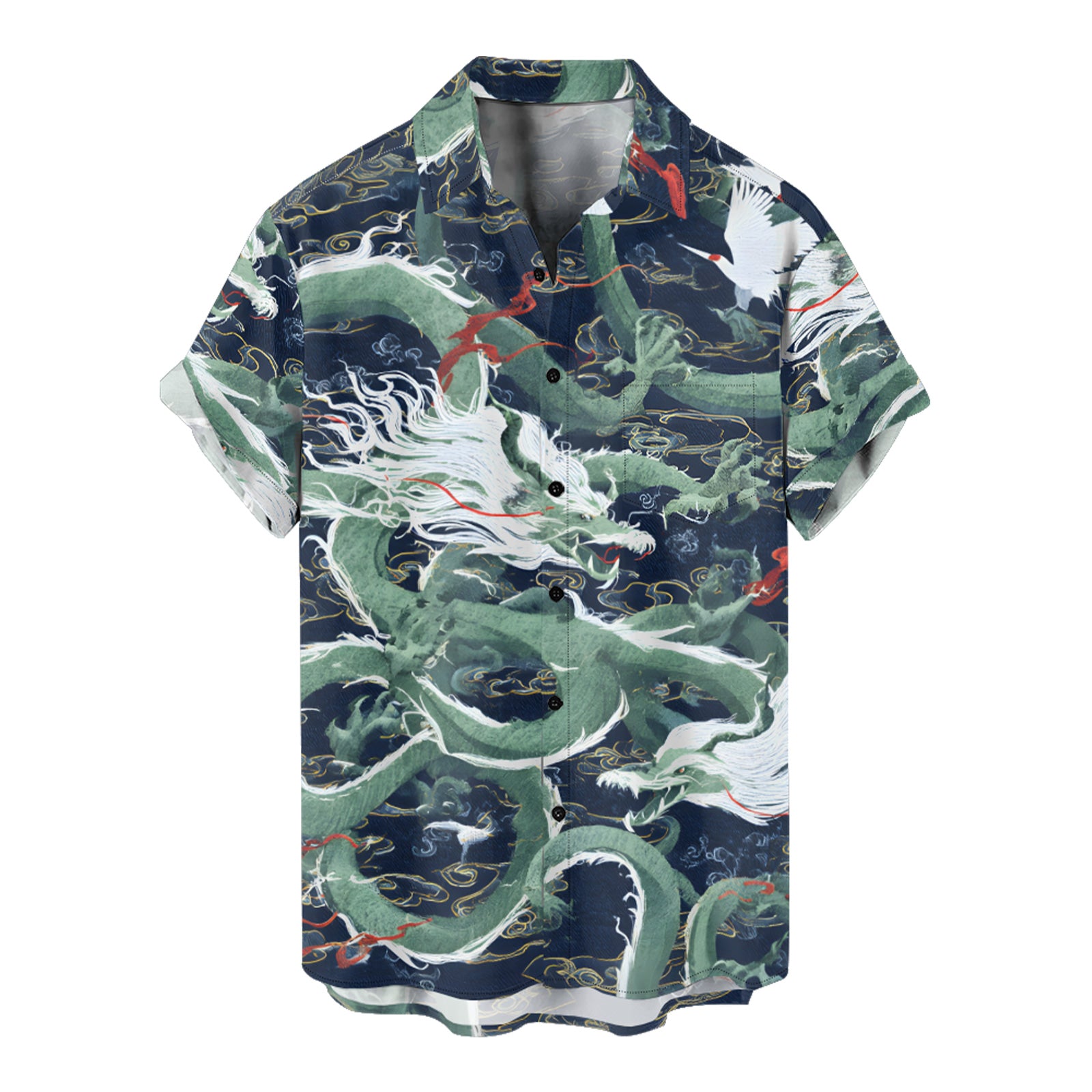 Green Oriental Dragon Men's Shirt Long Sleeve Button Up Shirt