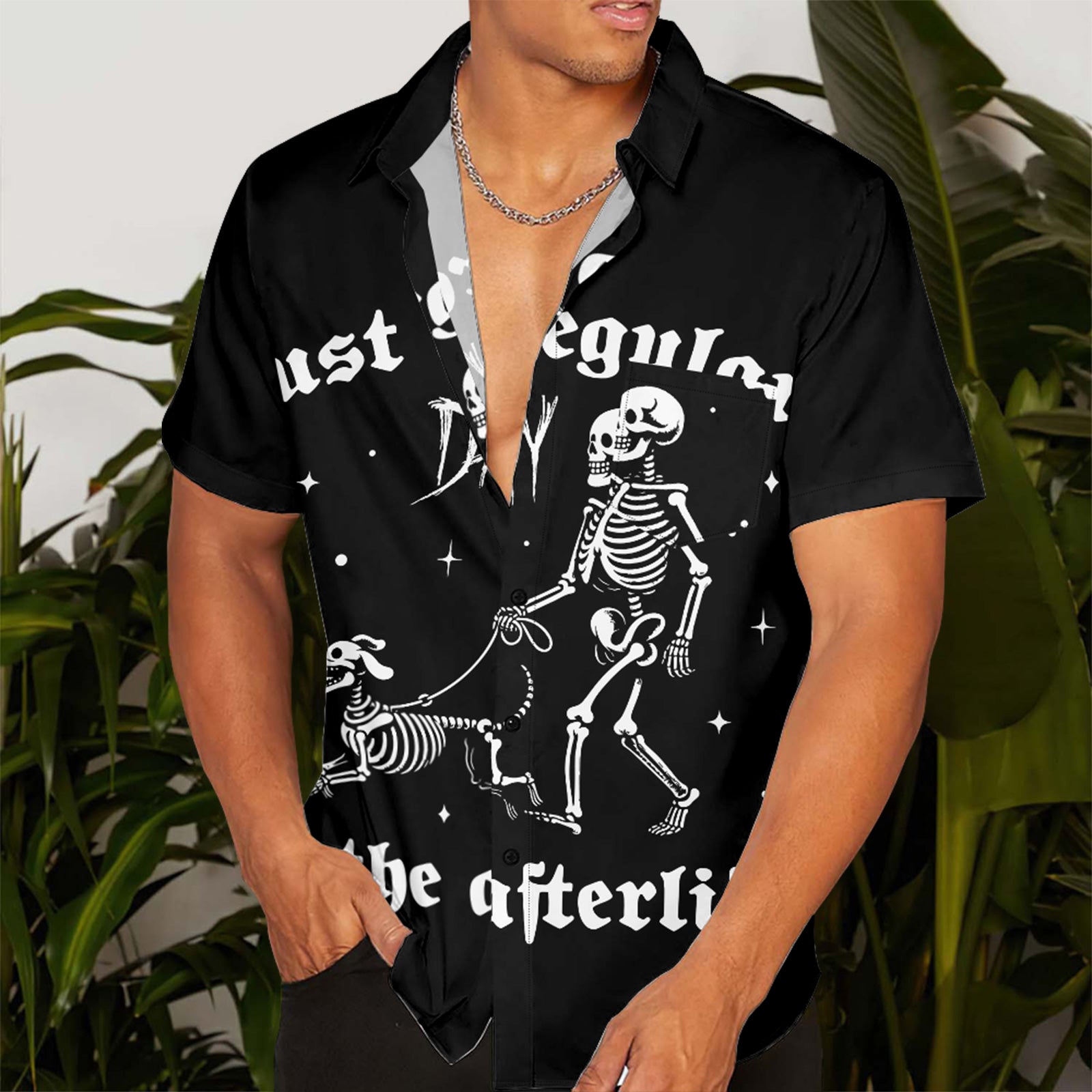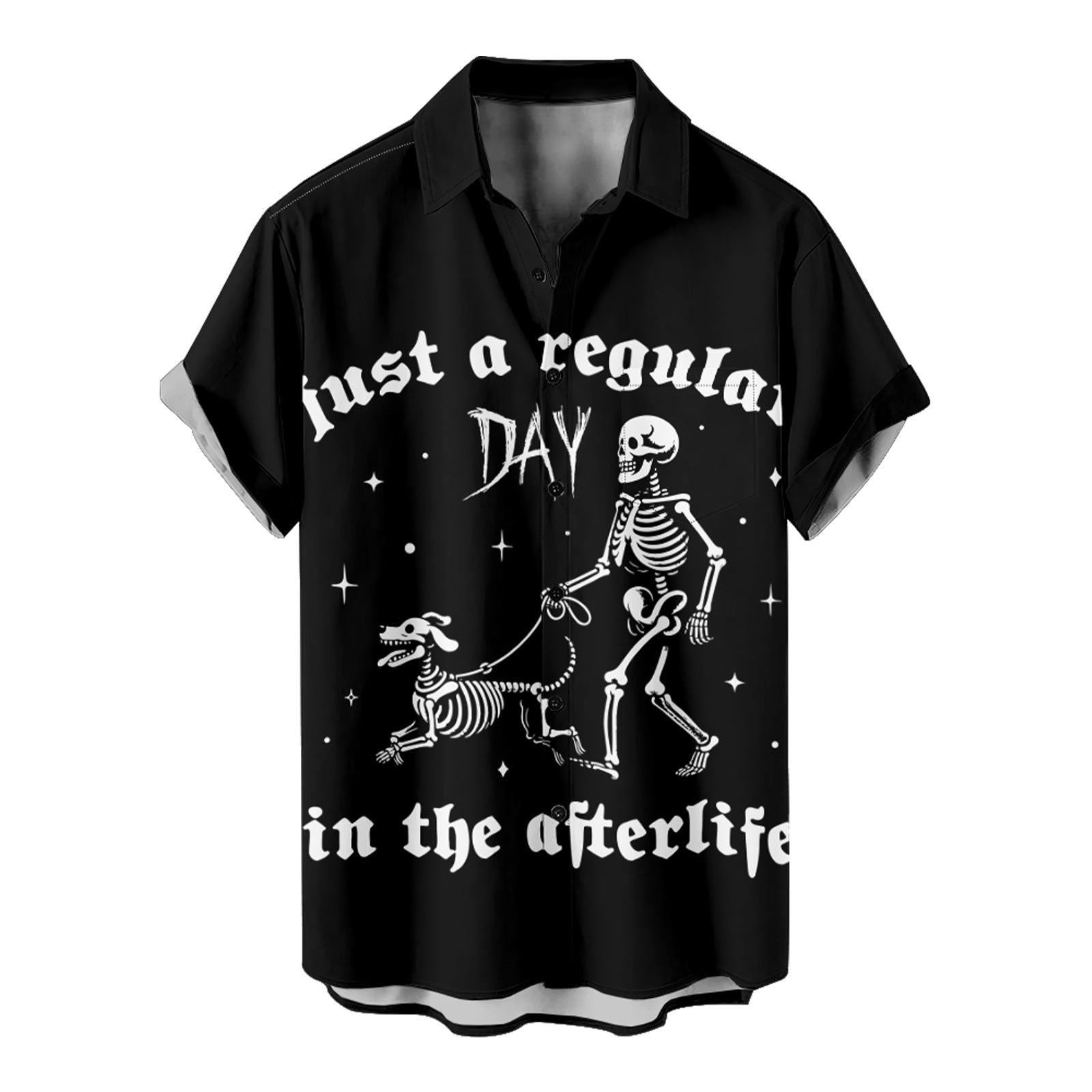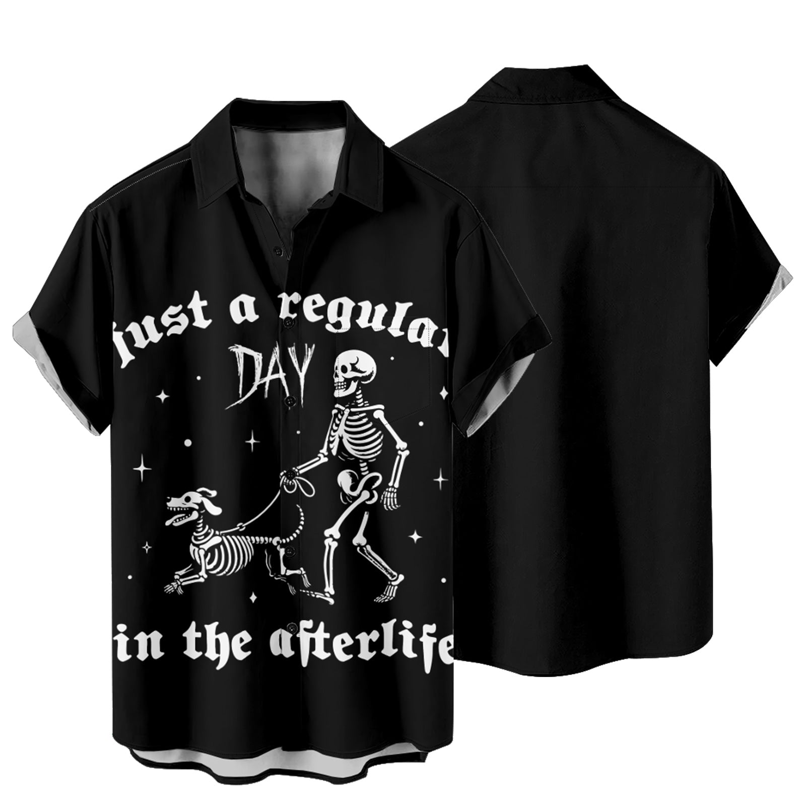 Halloween Skeleton Dog Men's Pocket Shirt Stretch Quick Dry Button Up Shirt