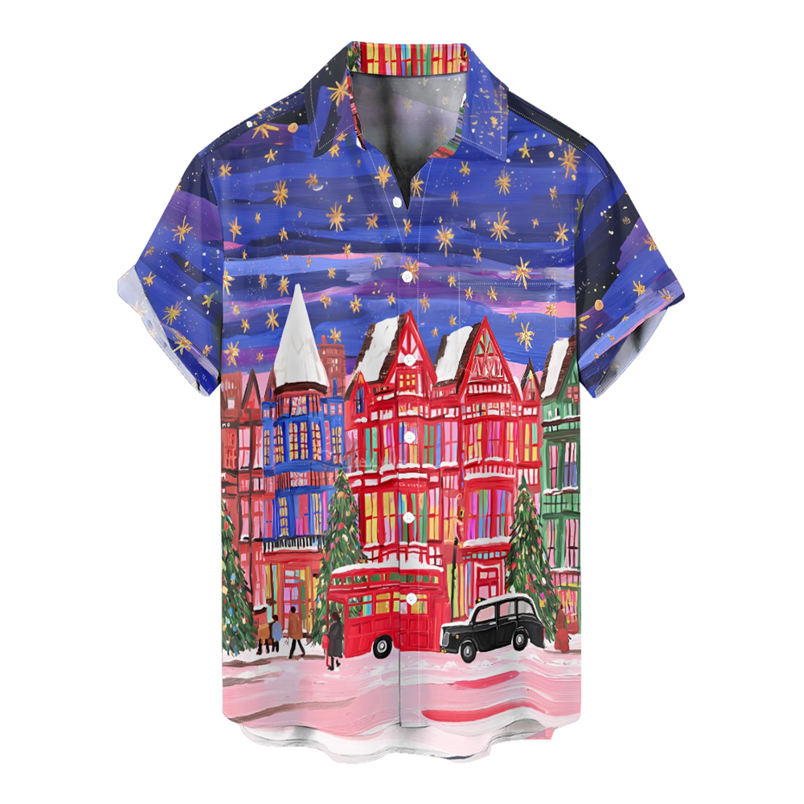London Christmas Night Oil Painting Men's Shirt Long Sleeve Button Up Shirt