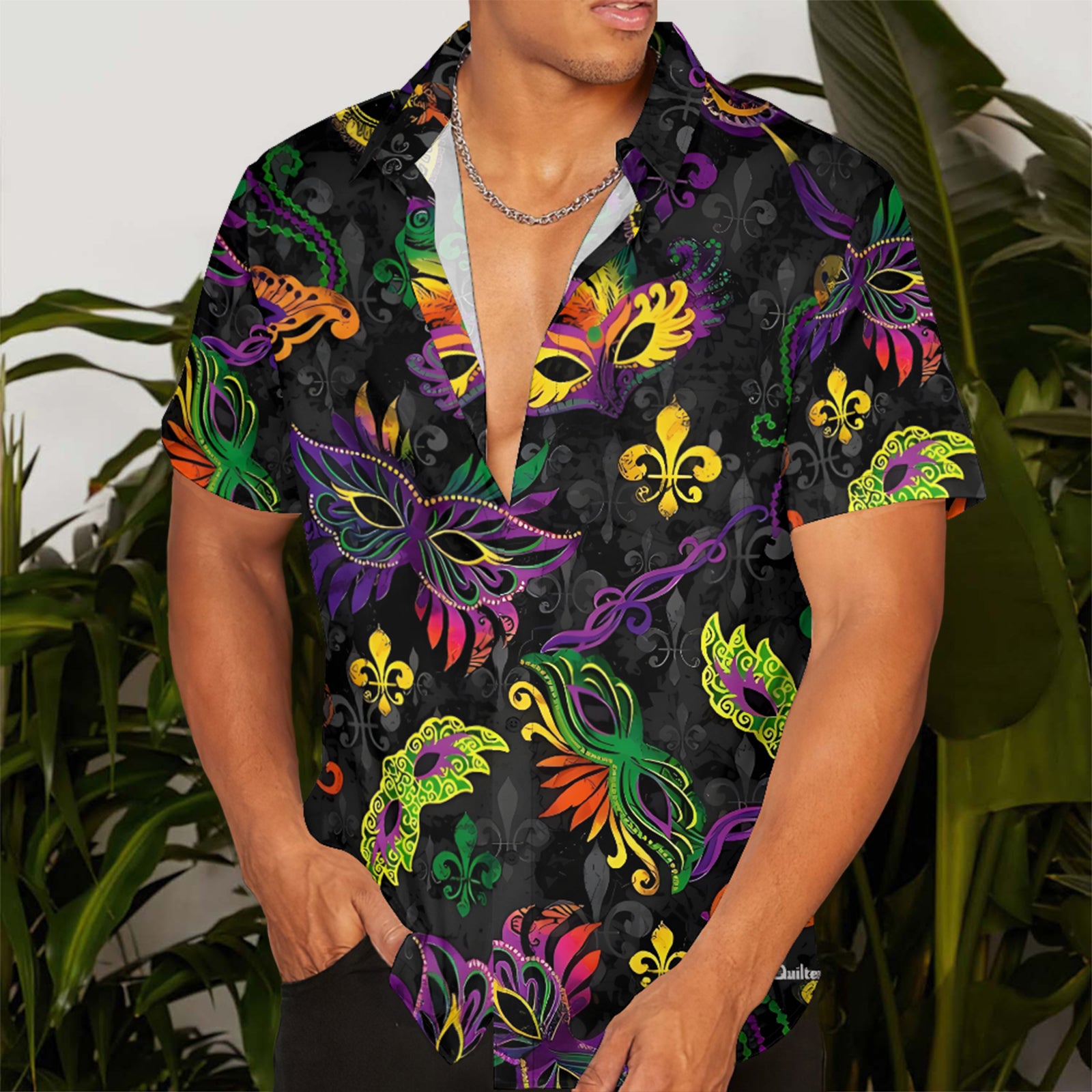 Mardi Gras Grand Gala Mask Men's Pocket Shirt Stretch Quick Dry Button Up Shirt