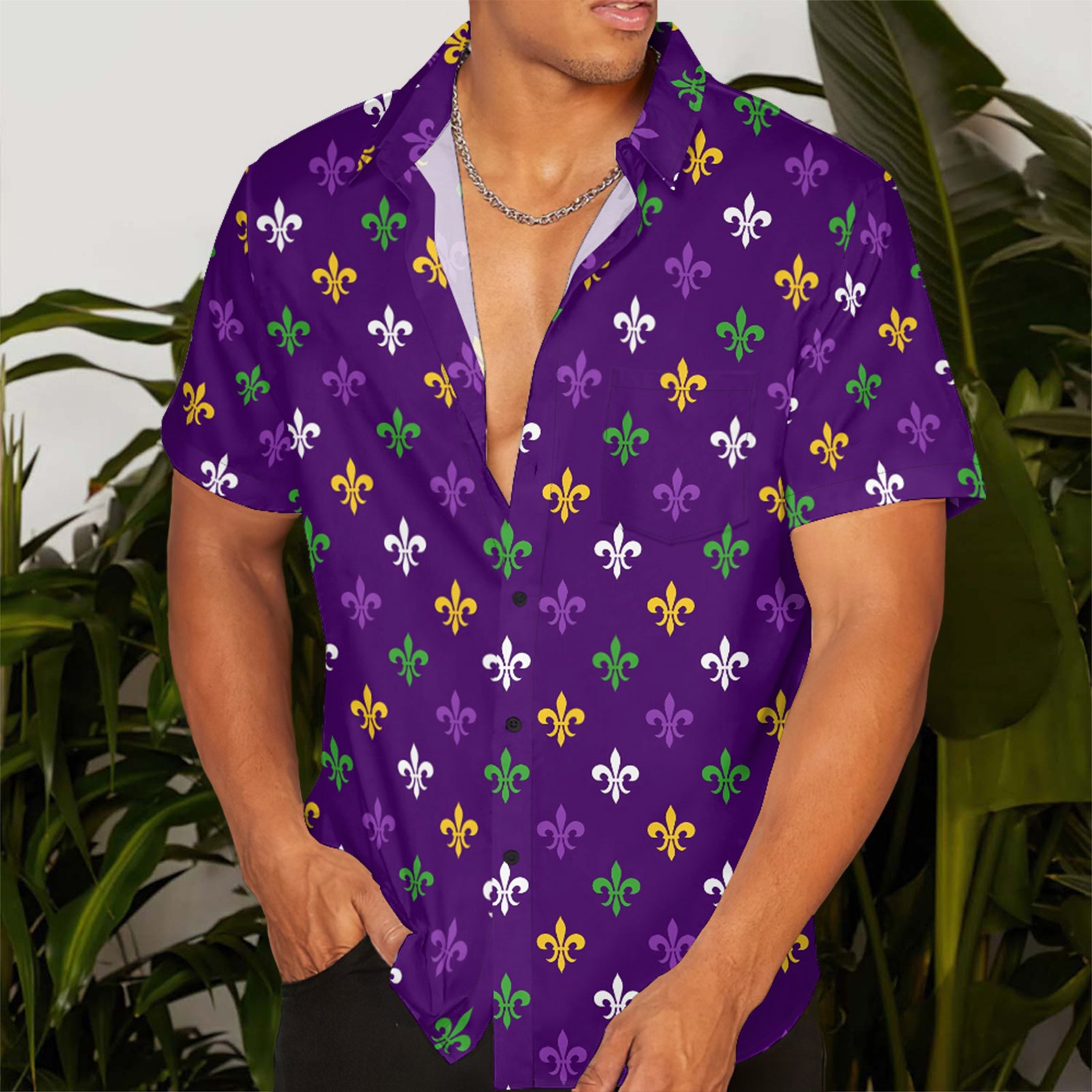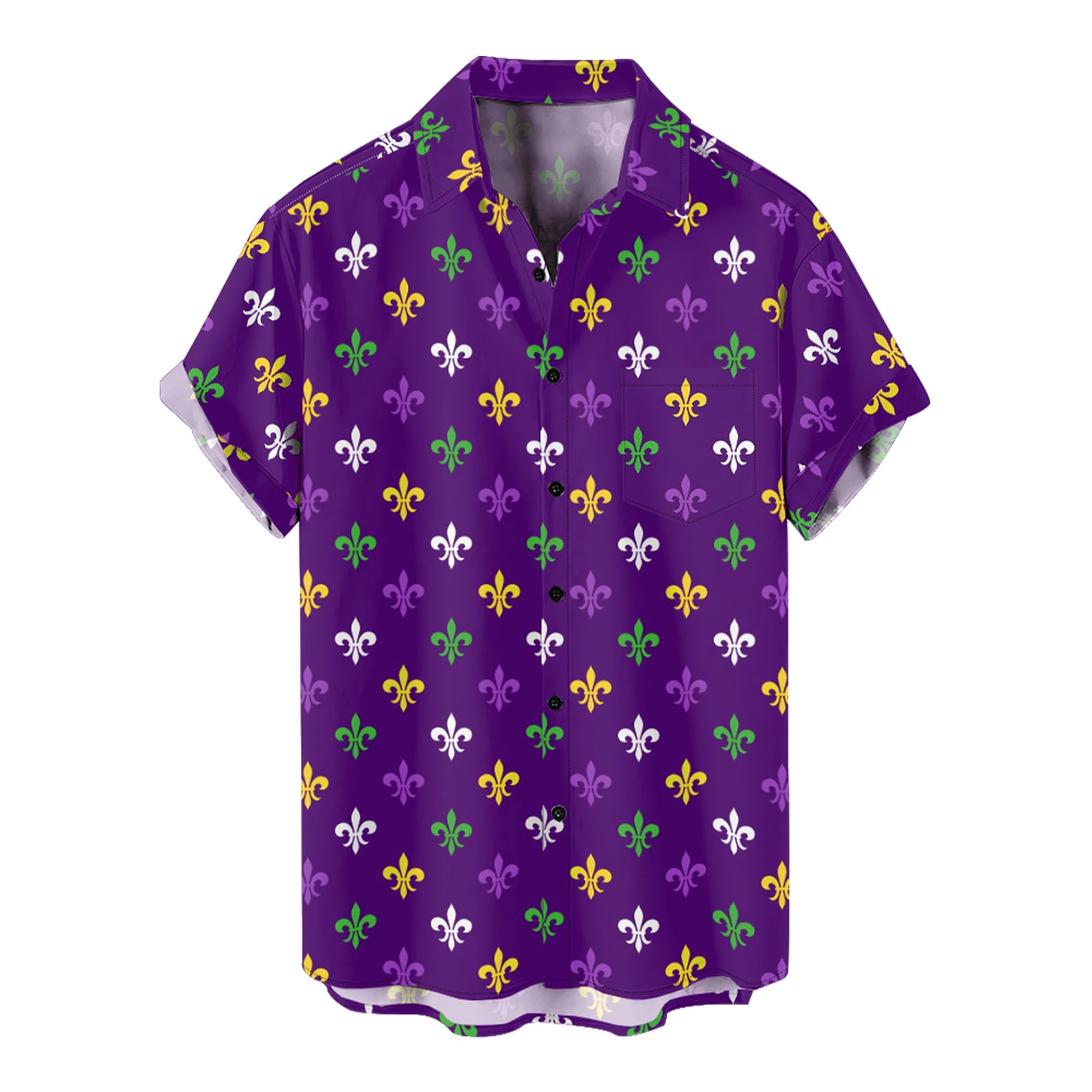 Mardi Gras Iris Art Pattern Men's Pocket Shirt Stretch Quick Dry Button Up Shirt