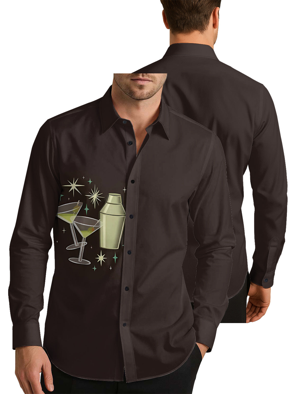 Martini 1950s Retro Art Men's Shirt Long Sleeve Button Up Shirt