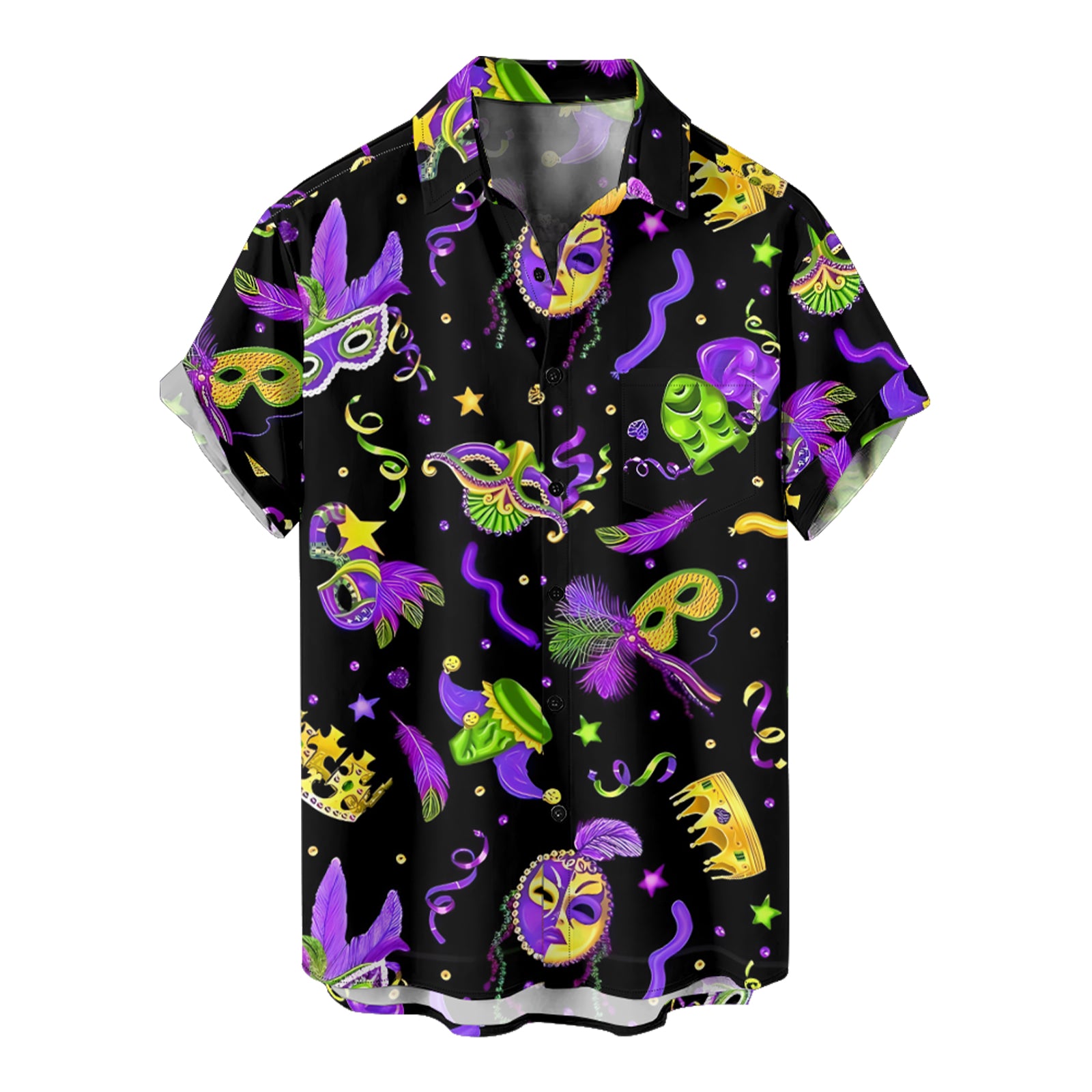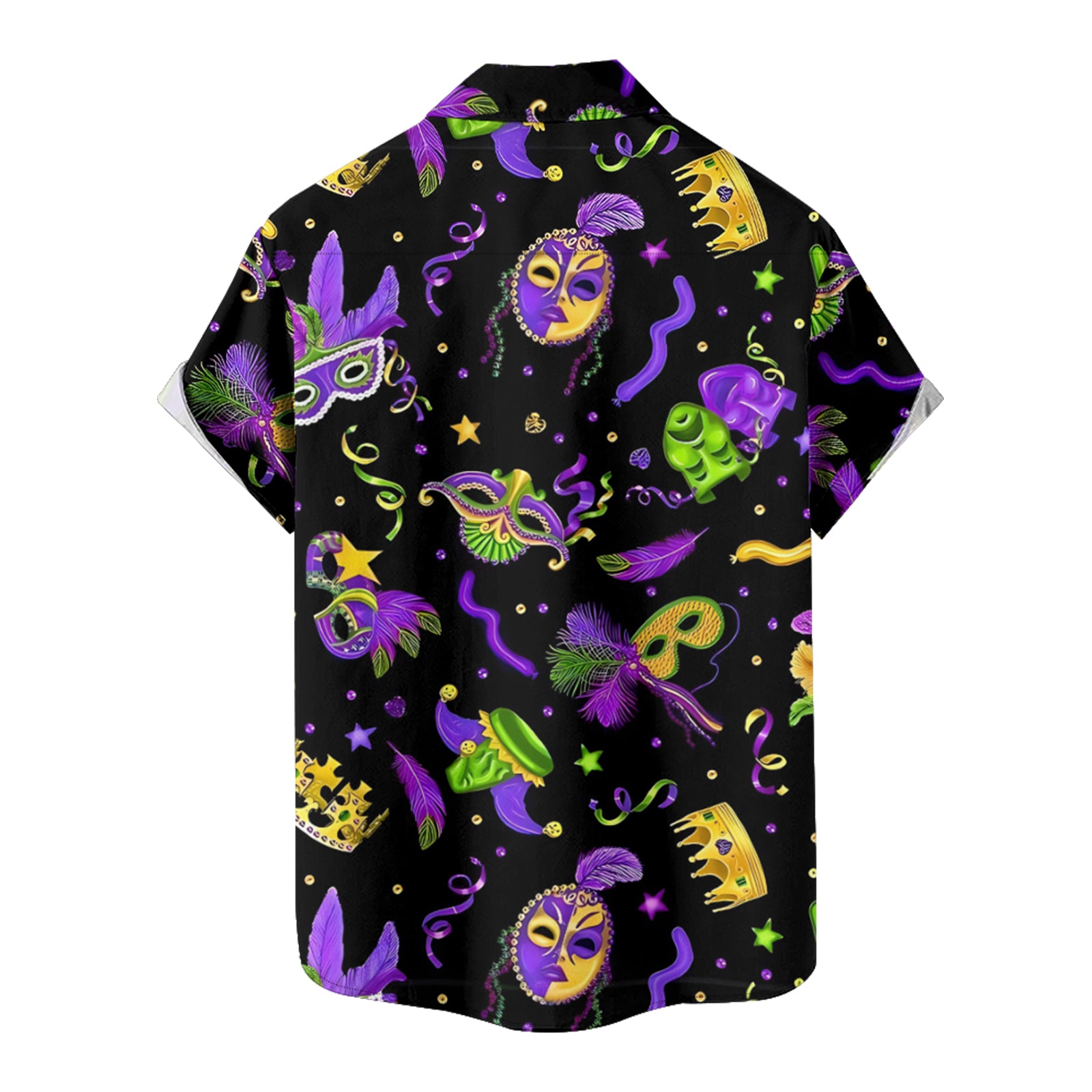 Midnight Mardi Gras Masquerade Men's Pocket Shirt Stretch Quick Dry Button Up Shirt