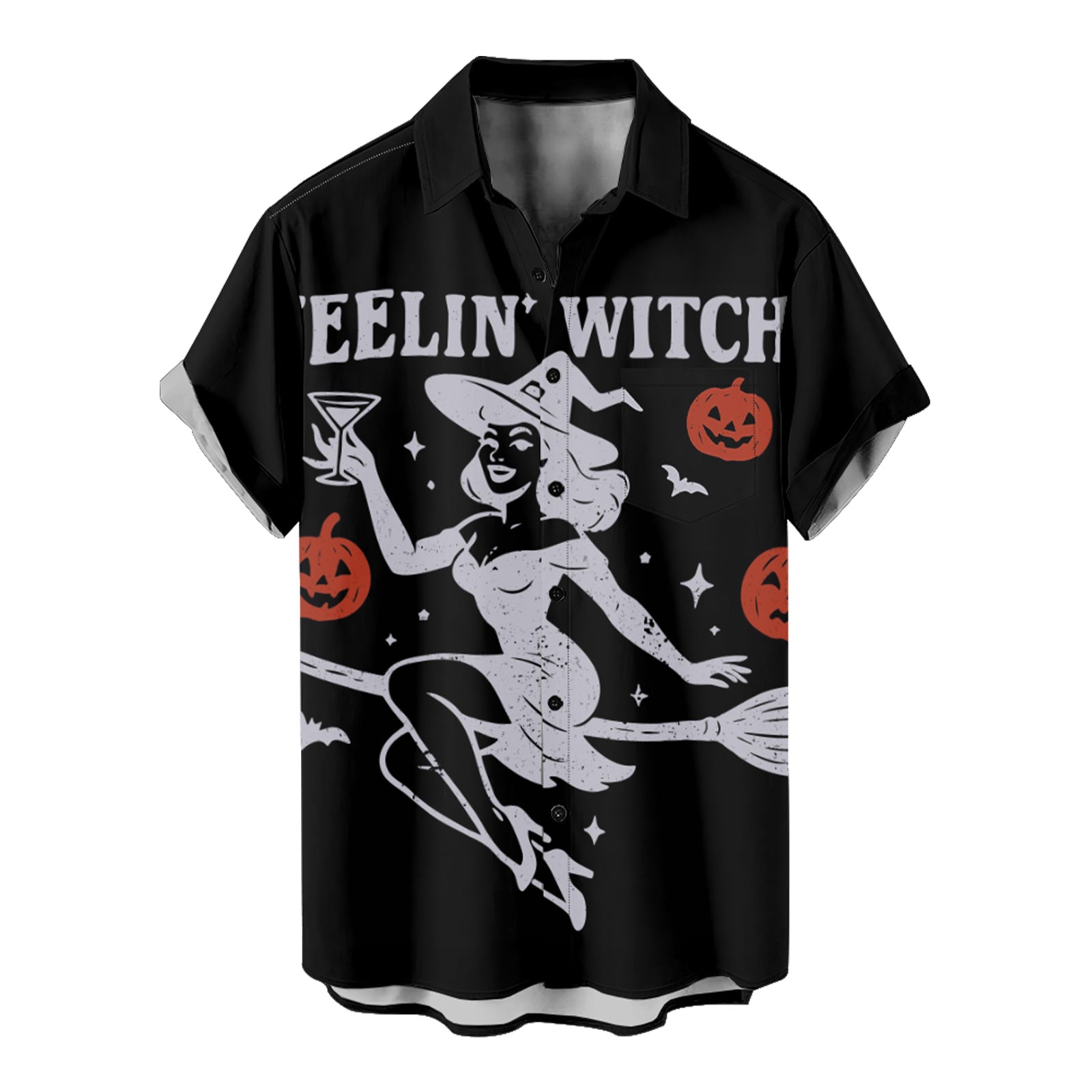Retro Witch Halloween Men's Shirt Long Sleeve Button Up Shirt