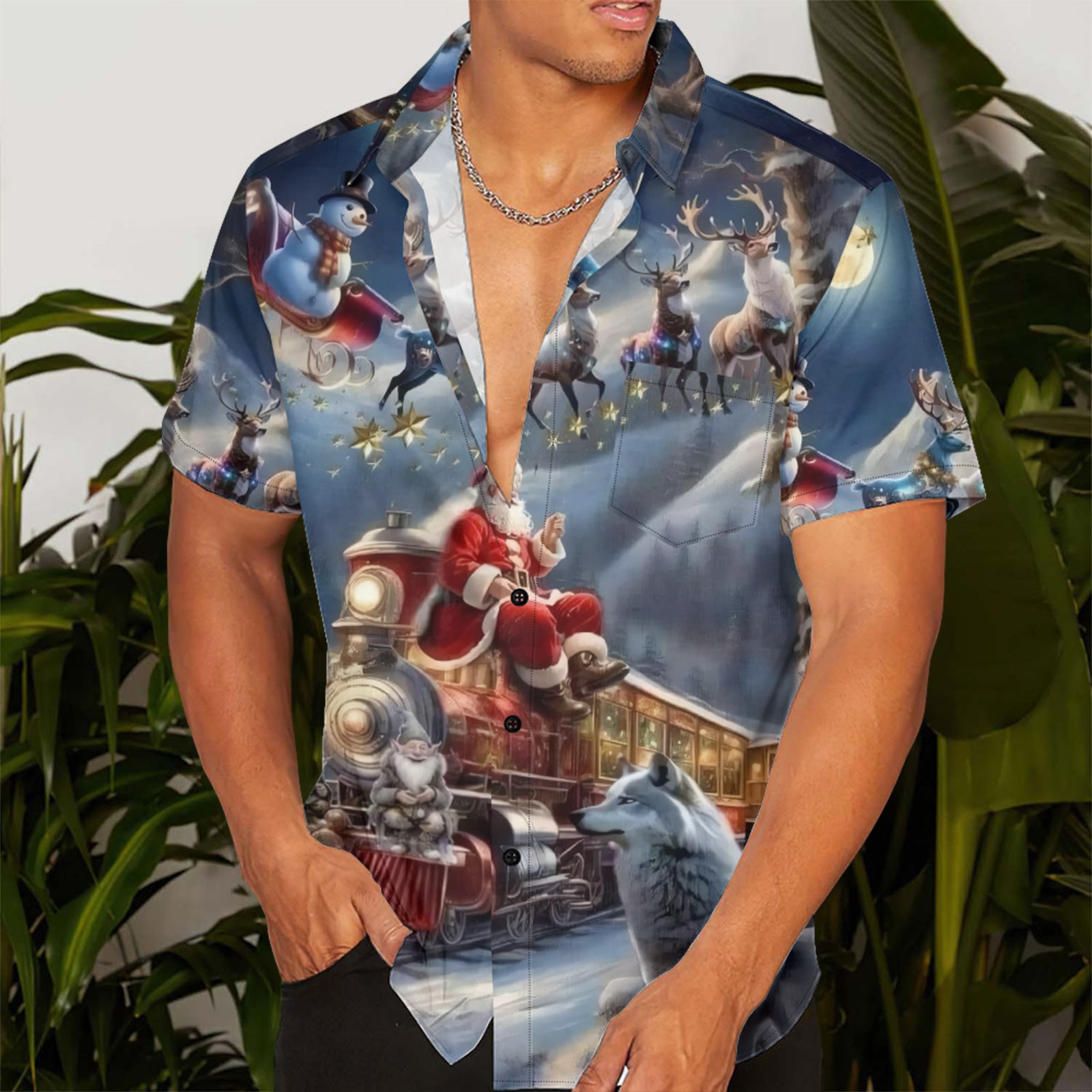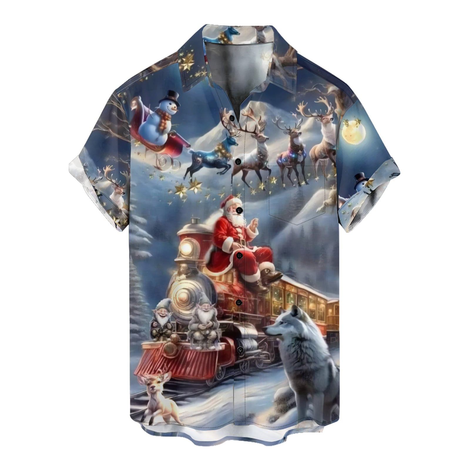 Santa Claus Train Men's Pocket Shirt Stretch Quick Dry Button Up Shirt
