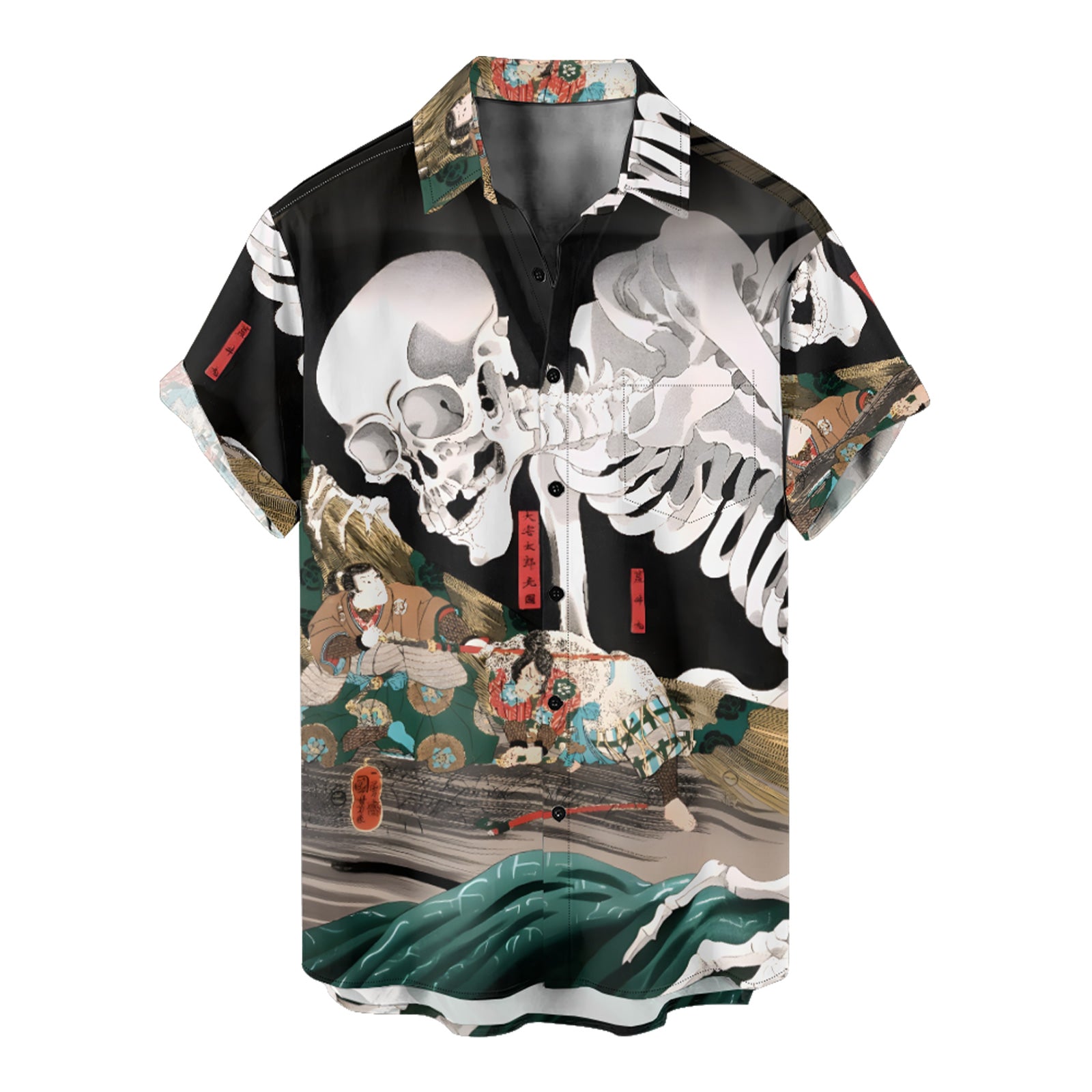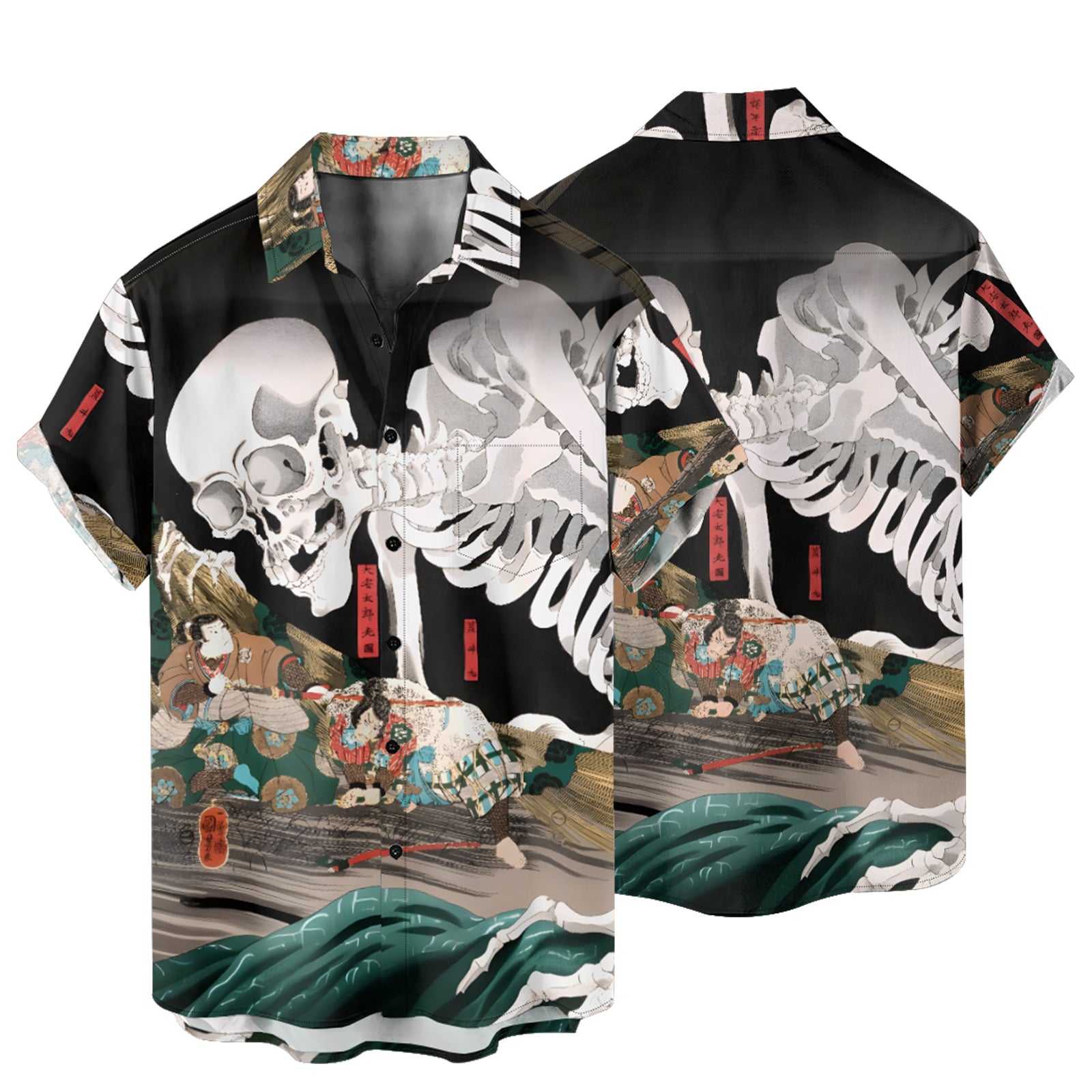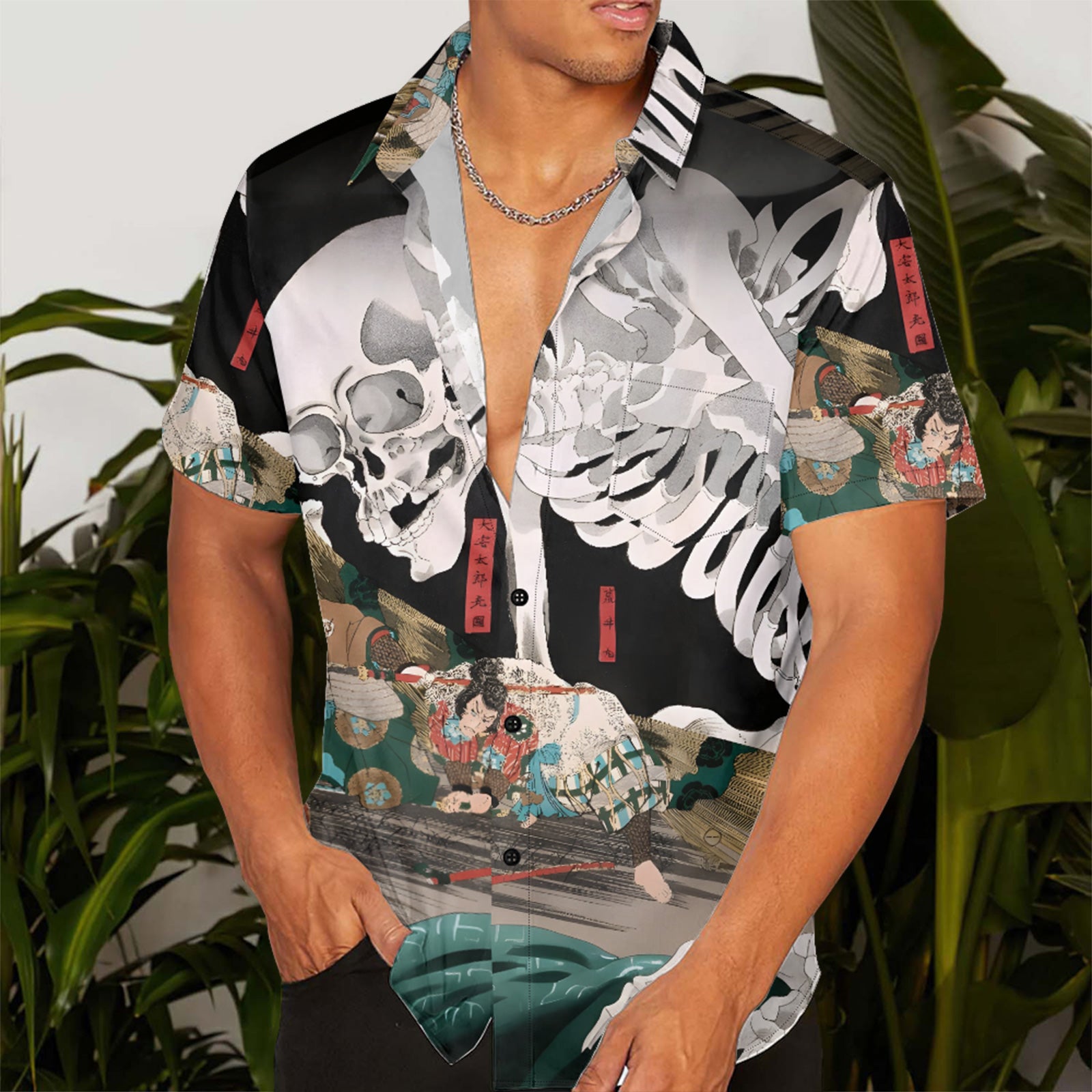 Vintage Japanese Ukiyo-e Men's Pocket Shirt Stretch Quick Dry Button Up Shirt