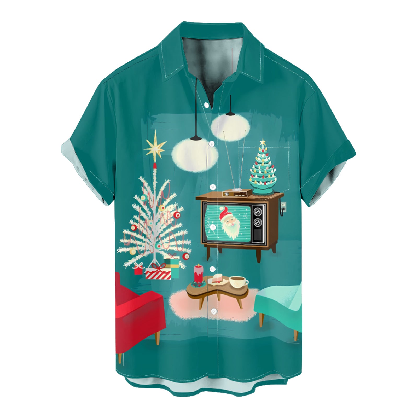 Vintage TV Christmas 50s Style Men's Shirt Long Sleeve Button Up Shirt